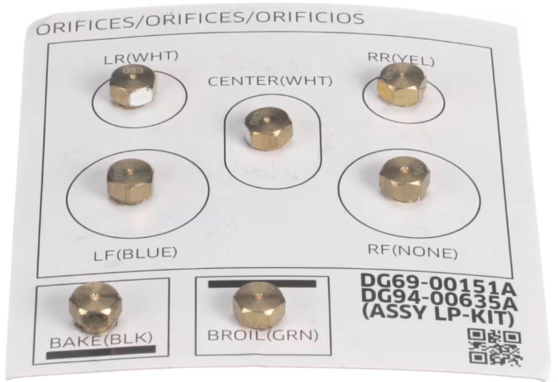 Choose the Samsung DG69-00151A Gas Conversion Kit to safely and efficiently convert your range from natural gas to propane. With OEM precision and complete compatibility, it ensures proper burner performance, stable flame control, and long-lasting reliability?delivering the same high cooking quality even after fuel conversion.