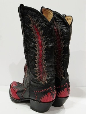 Tony Lama X68536 RED FLAME Black Boot Leather Cowboy Western Stitched 6.5 B Used