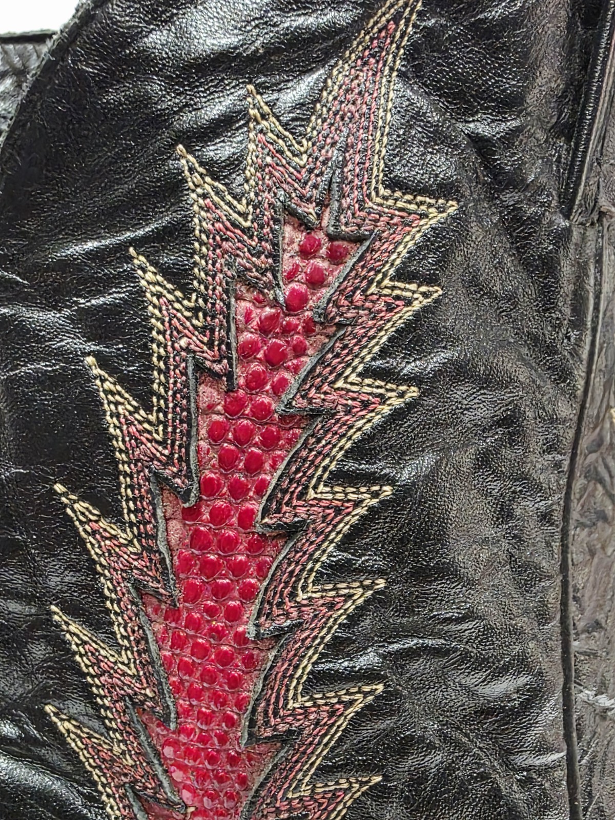Western/Handcrafted USA/Embroidered/Stitched/Lizard/Red Flames/Vintage |
