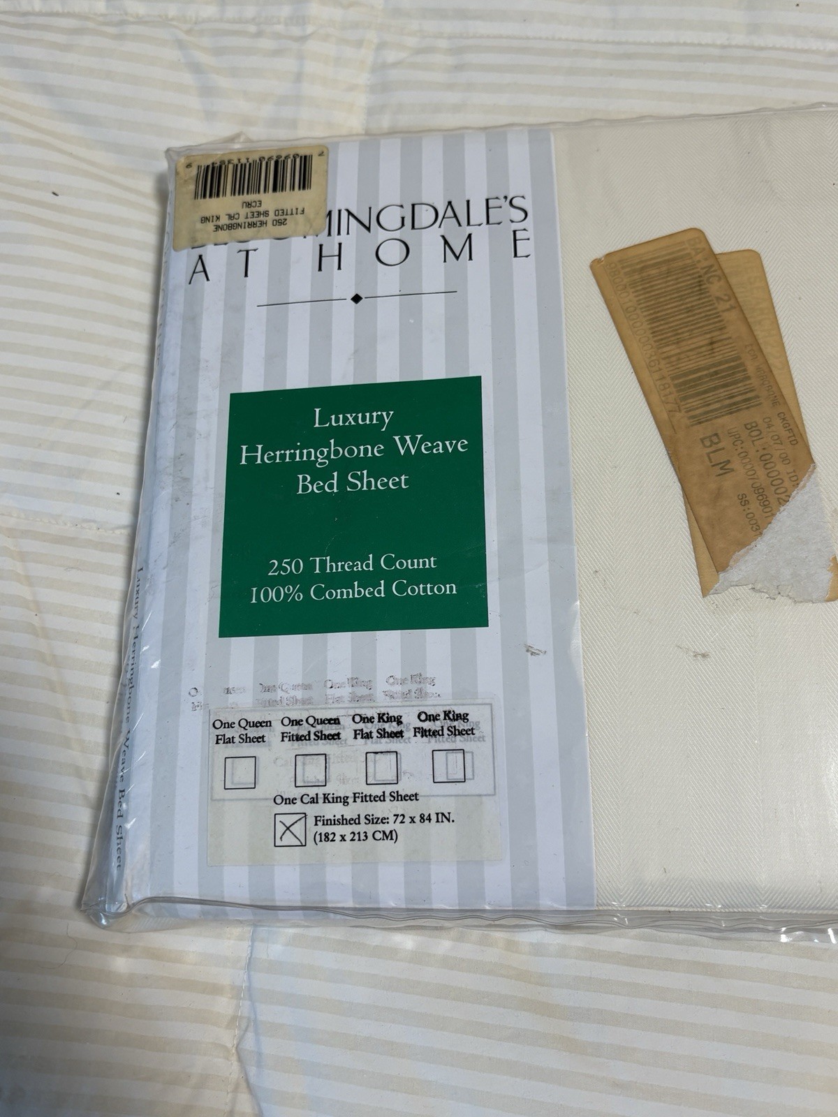 Bloomingdale's At Home Luxury Herringbone Weave Cal King Fitted Sheet 72 X 84