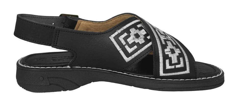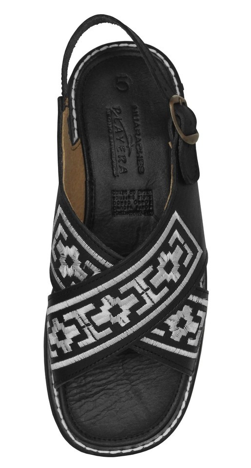 Mens Leather Authentic Mexican Huaraches Open Sandal Embroidered Black Piteado