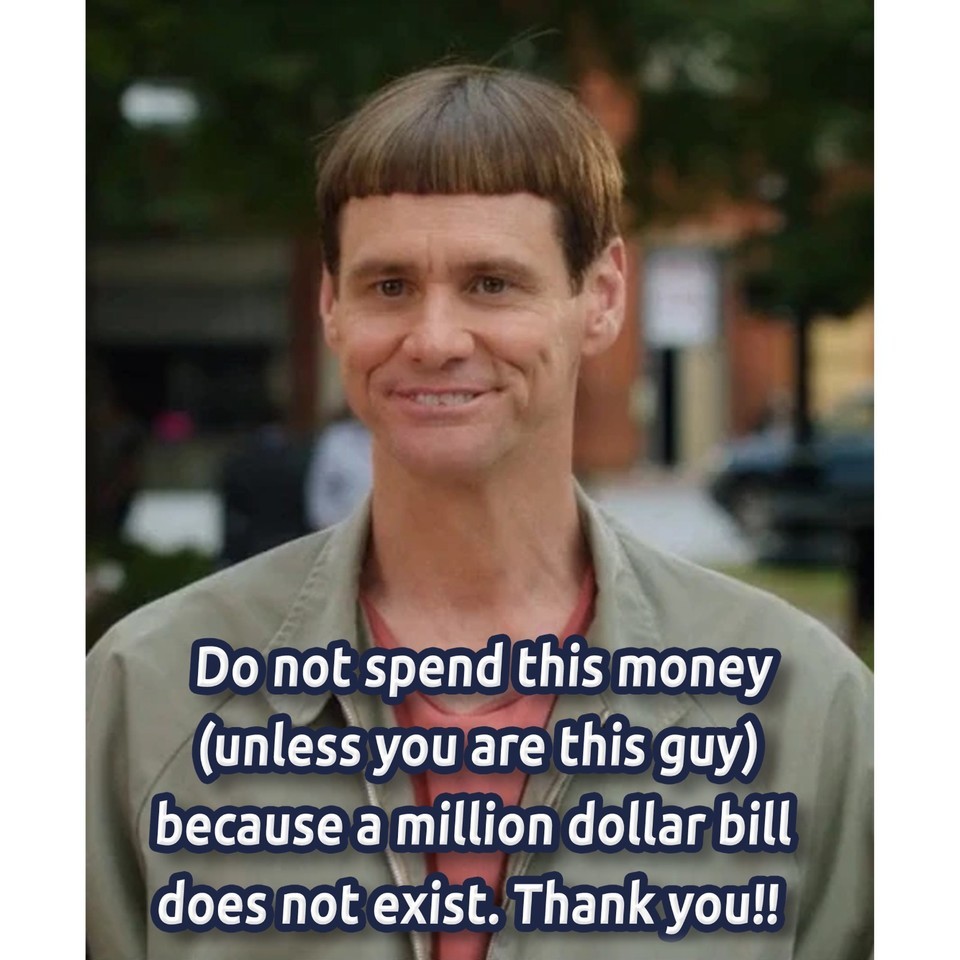 MILLION DOLLAR BILL FUNNY PLAY MONEY NOVELTY ITEM VISION BOARD