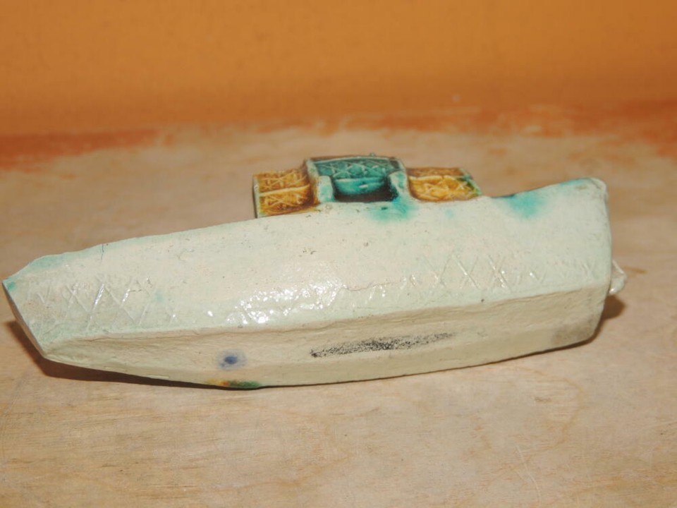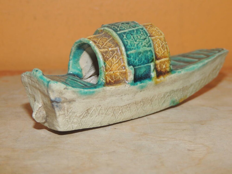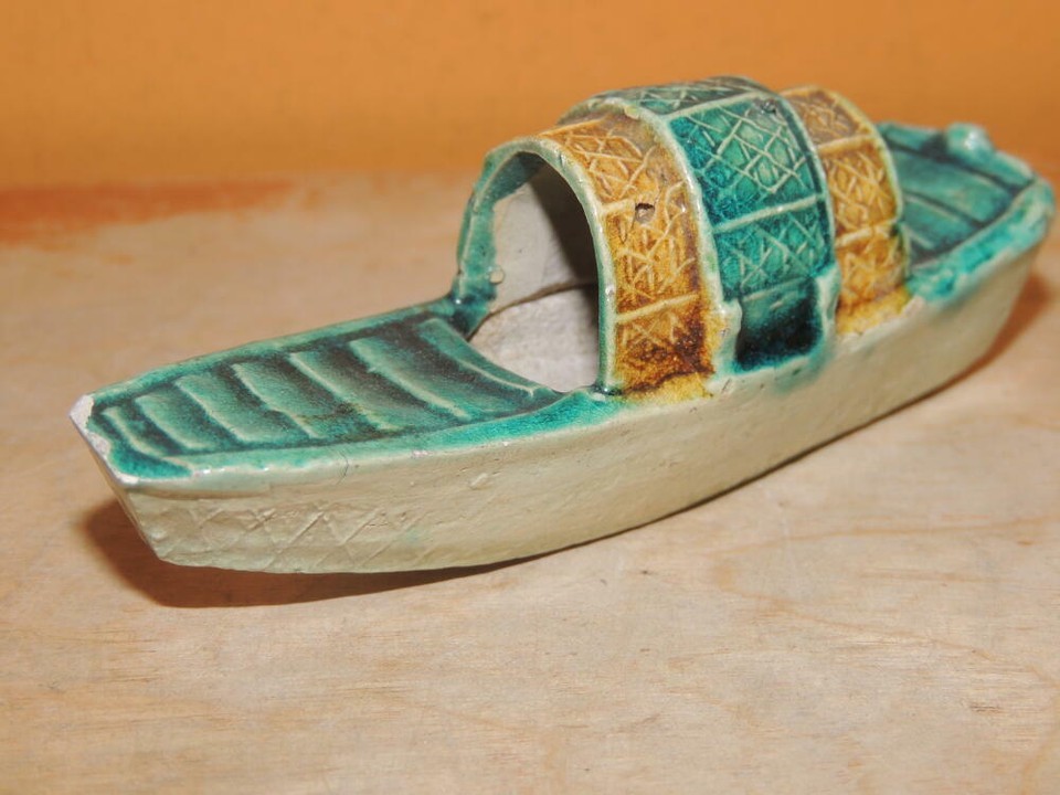 Miniature Mud Sampan 3.75" Boat Village Mudman Bonsai Chinese / Japanese Vintage