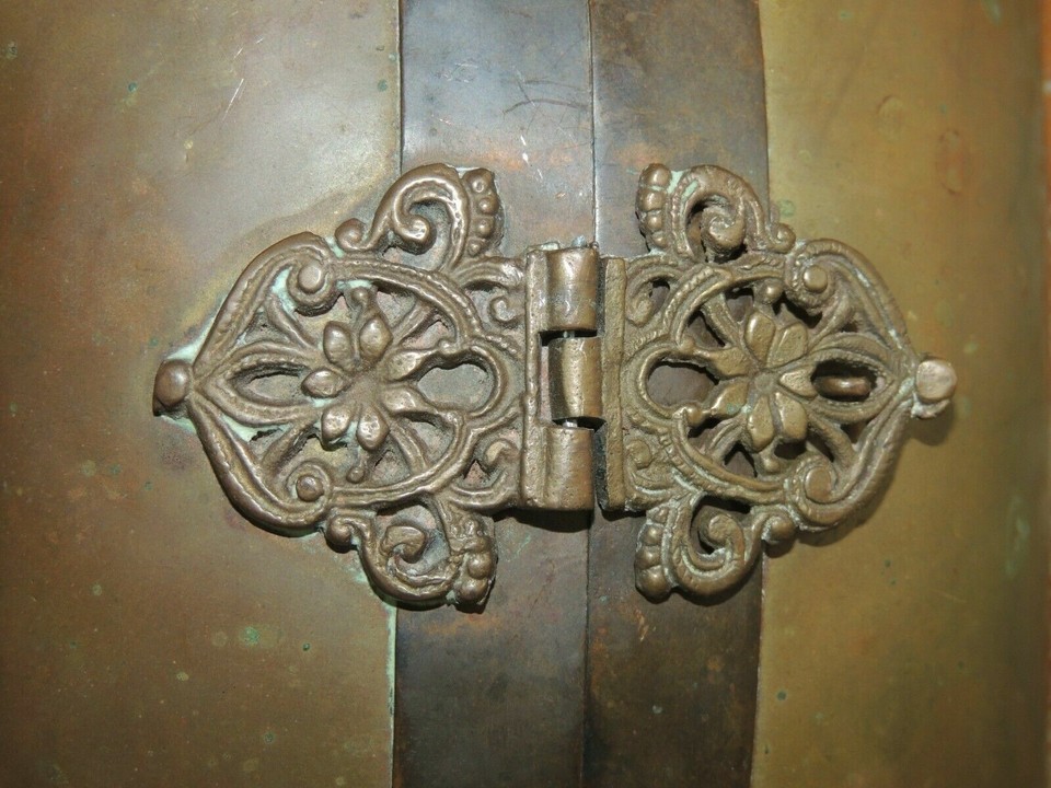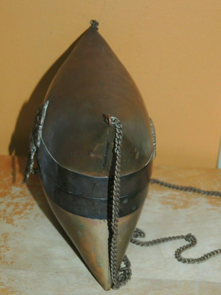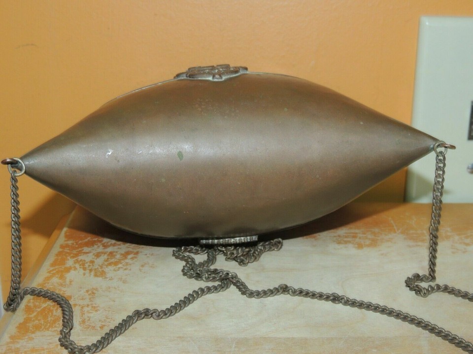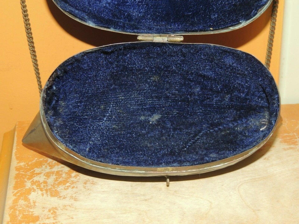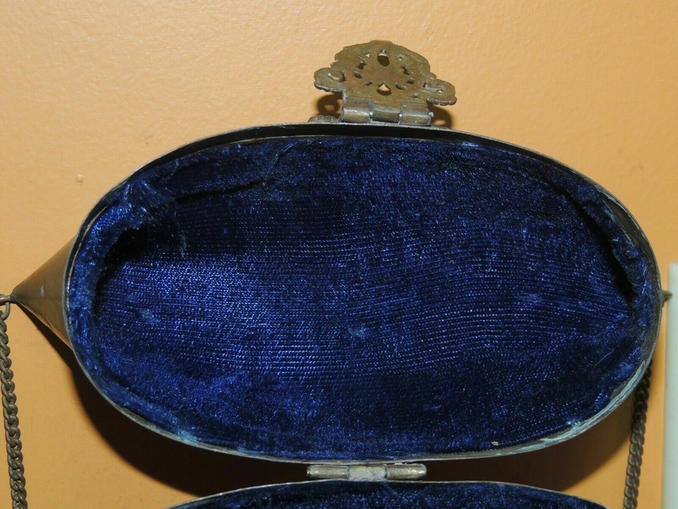 Art Deco Pillow Purse Bag Brass& Copper Blue Velvet Lining Cushion Antique 1930?