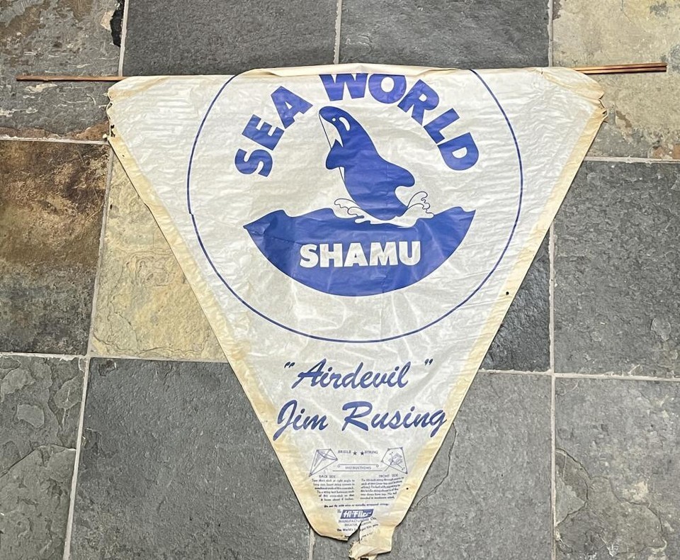Vintage 1970's Hi-Flier Paper Kite Sea World Shamu AirDevil Jim Rusing AS SEEN