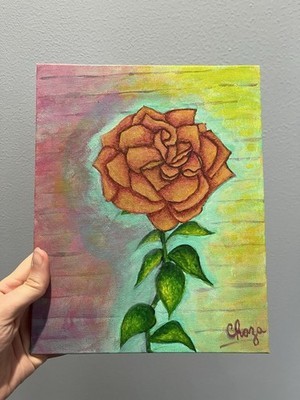 Original Acrylic Landscape “Golden Rose” Art On Canvas Panel, 8 By 10 Inches