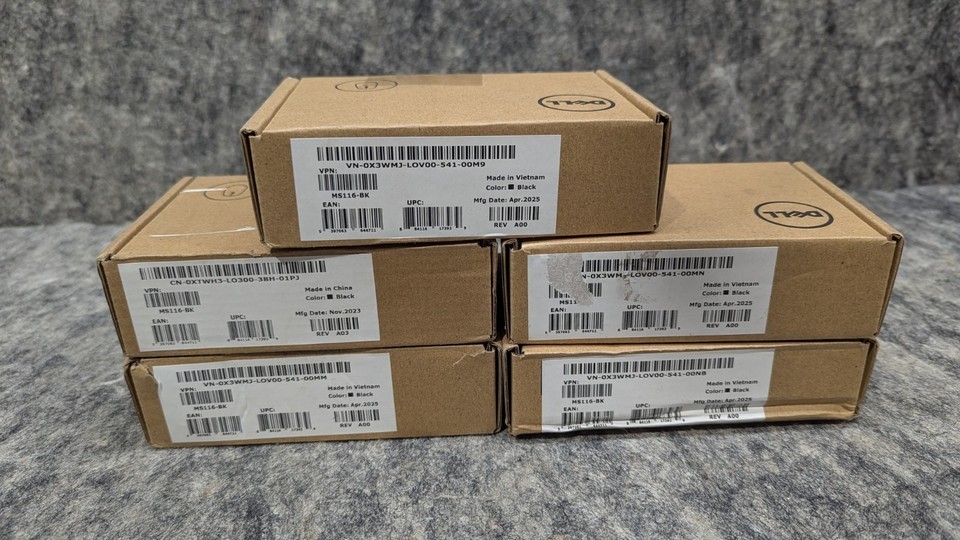 Lot of 5 New Dell MS116-BK Optical USB Wired and 49 similar items