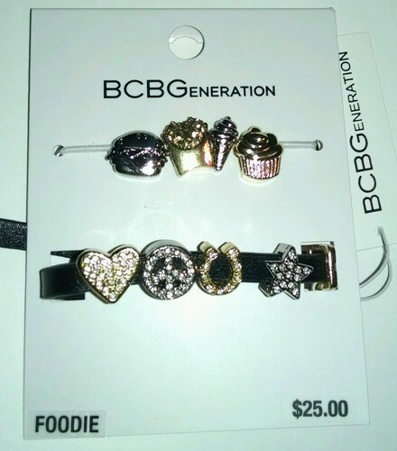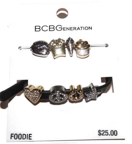 NWT $25 NEW BCBGeneration BCBG Rhinestone Black Gold Silver Charm Bracelet