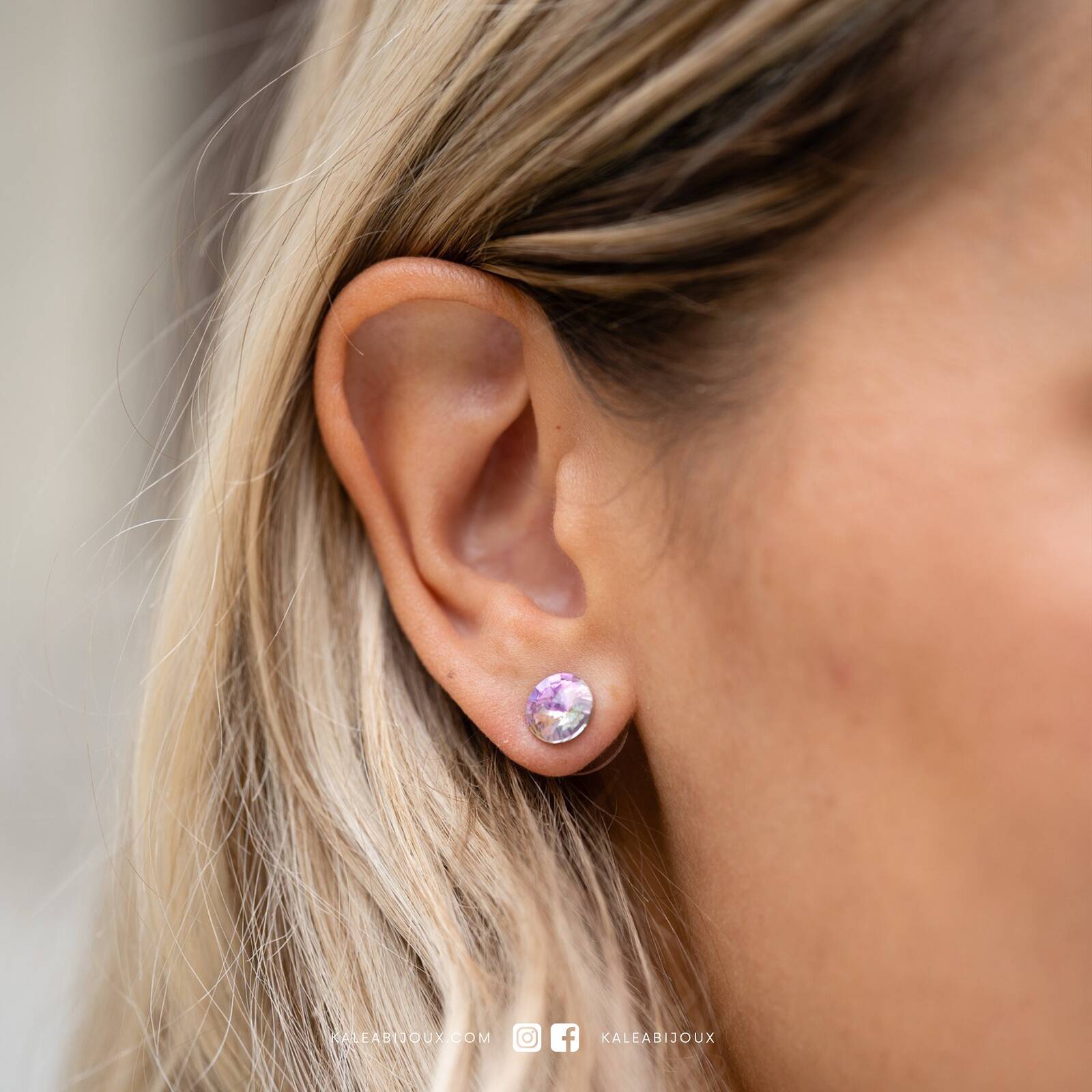 These 8mm iridescent Swarovski crystal studs shimmer with captivating color shifts, making them the perfect touch of magic for any jewelry collection. Whether you're dressing up or keeping it casual, their rainbow glow adds elegance and individuality to your look.