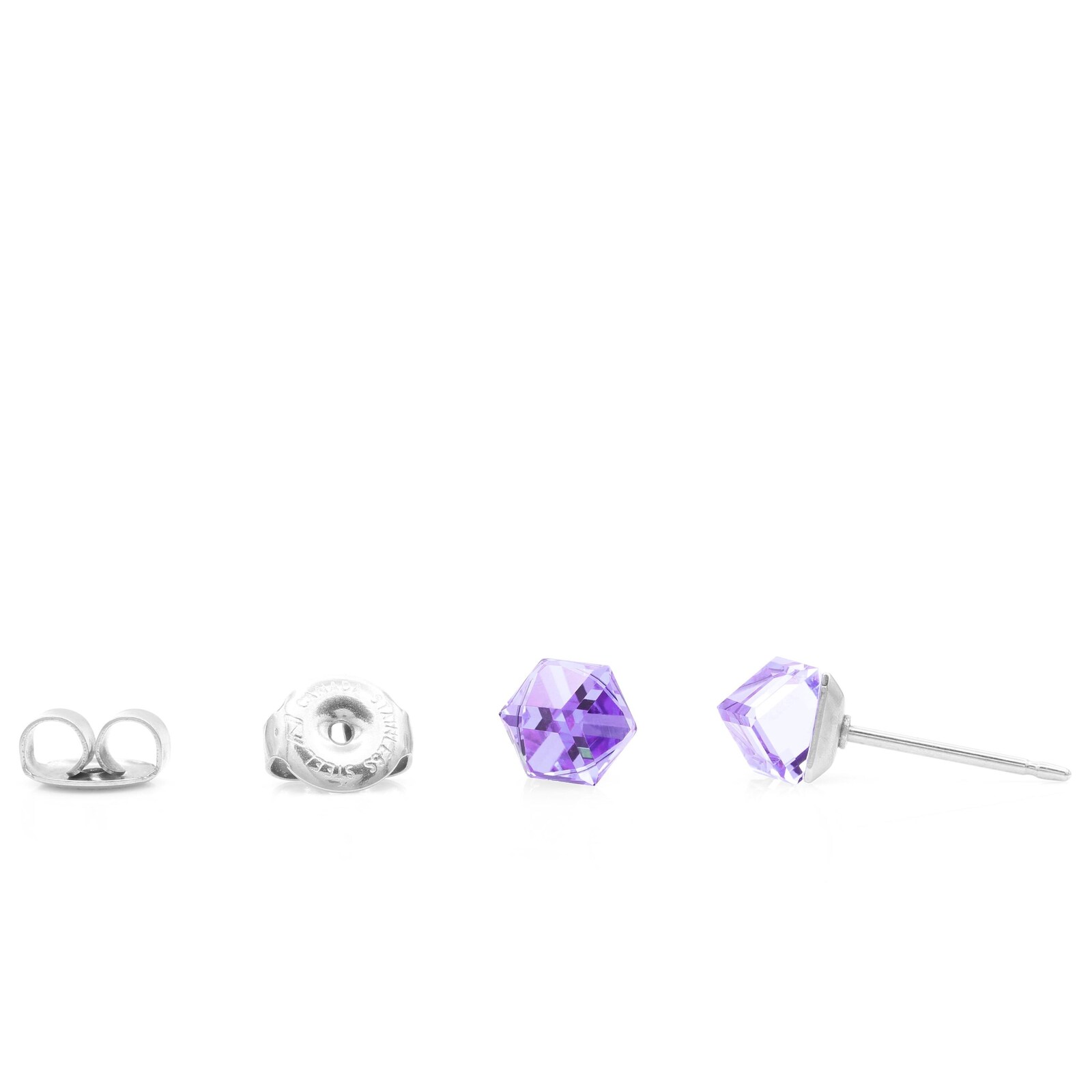 These mini purple cubic Swarovski crystal earrings are a beautiful and unique addition to any woman's jewelry collection.