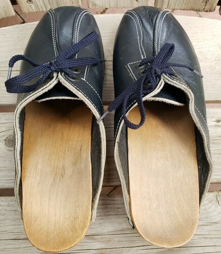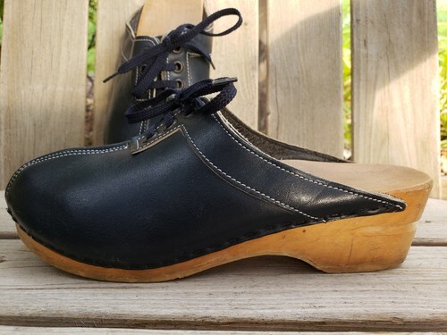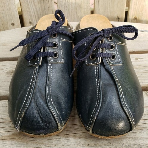 Vintage Leather Wood Clogs Womens Sz 6 Blue and similar items
