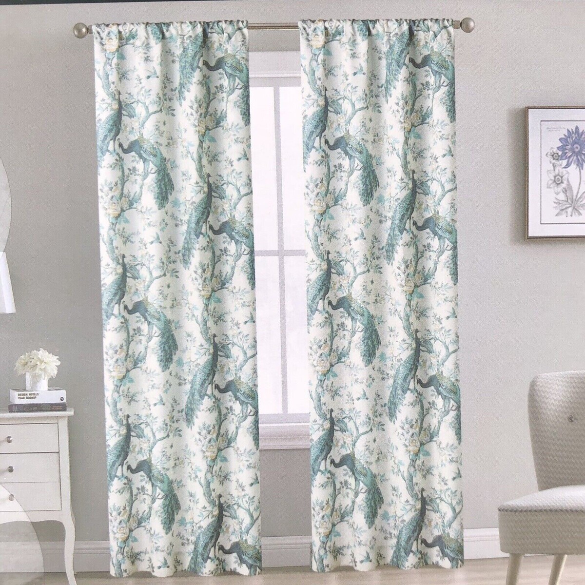 Laura Ashley Belvedere Peacock Pole Top Drapes Drapery Set