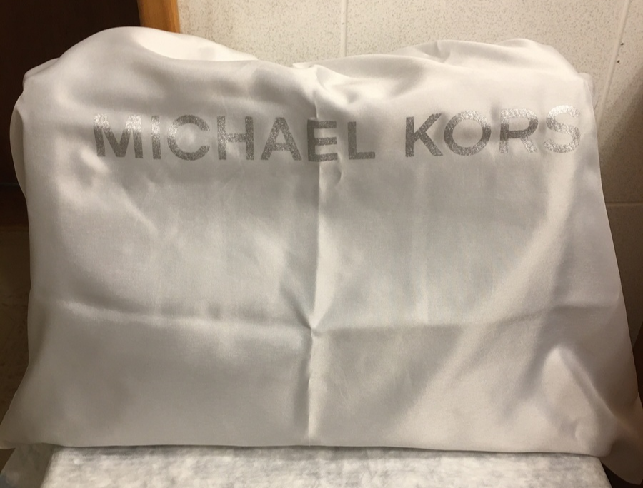 The bag measurements are: 13 inches wide (front seam to front seam) 11 inches tall (from top handle to bottom of bag) 6 inches wide along bottom of bag but opens to a wide 9.5 inches Inside compartments and pouches (see photos) MK gold logo on handle; stamped Michael Kors logo on inside of leather; MK logo on gold zipper inside bag. (there are various but are minor scratches, please review pictures) No original tags but will include a brand new Michael Kors dust bag! Comes from a smoke-free home. Original purchase price was $498.00