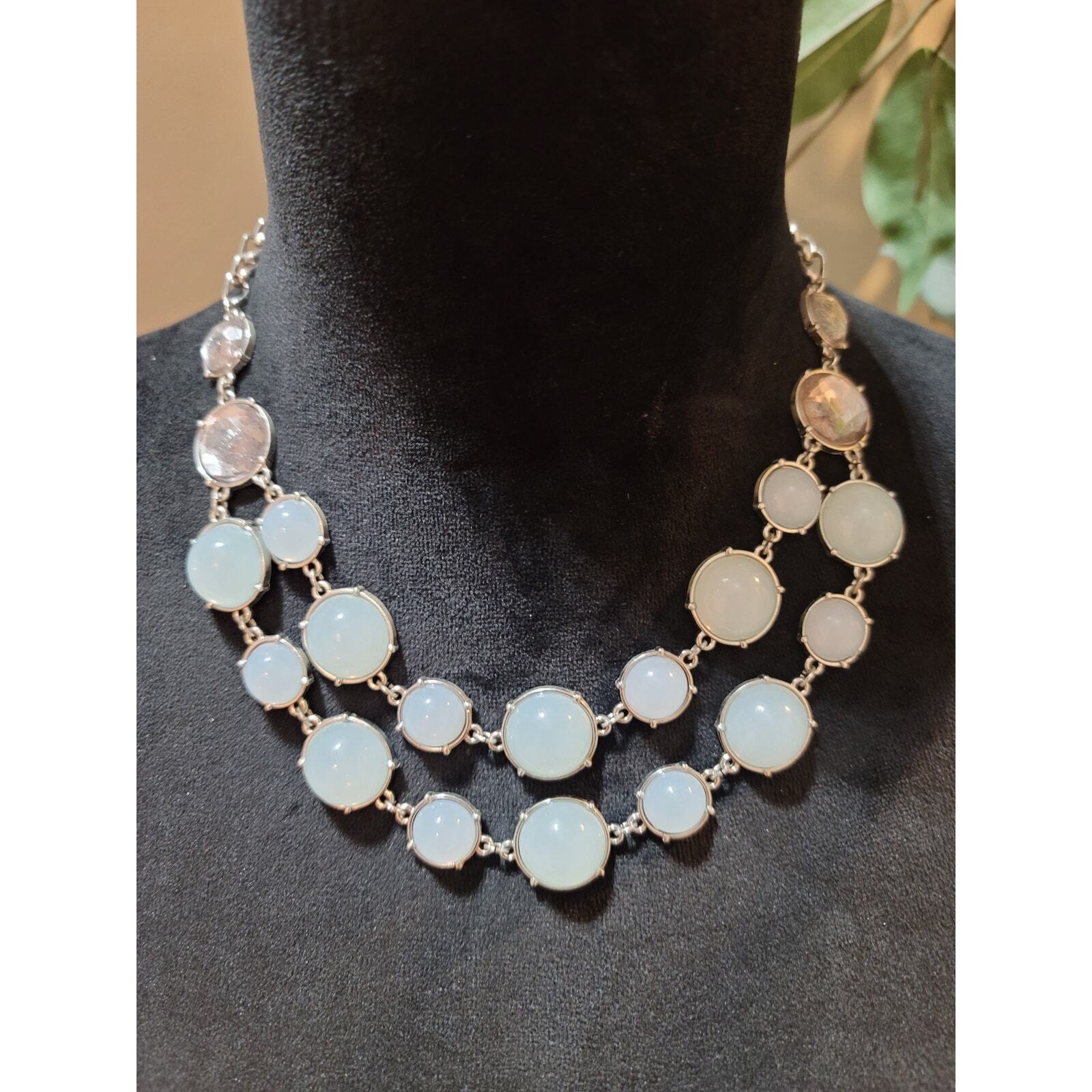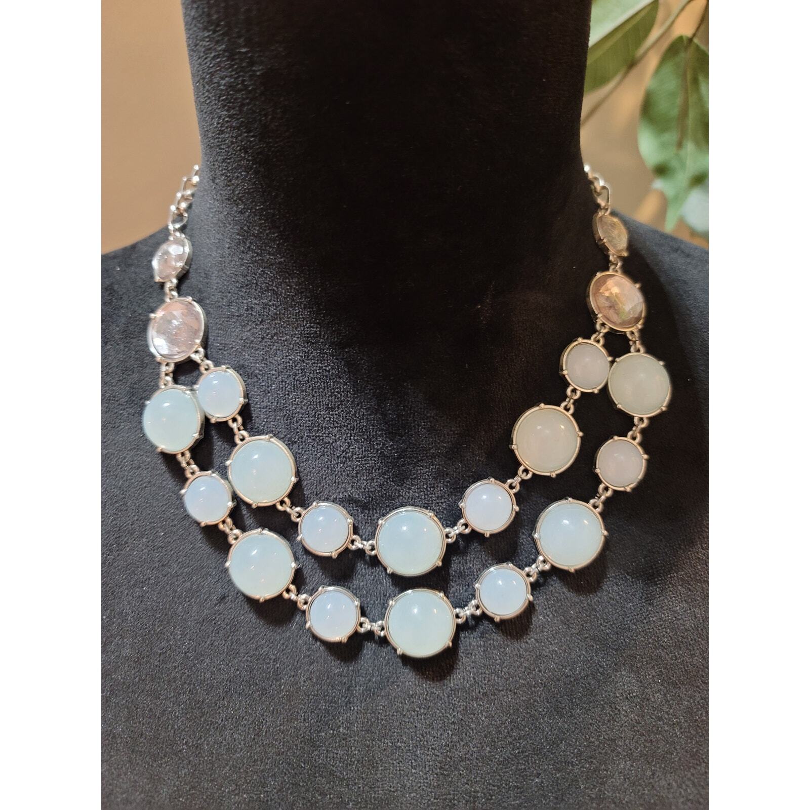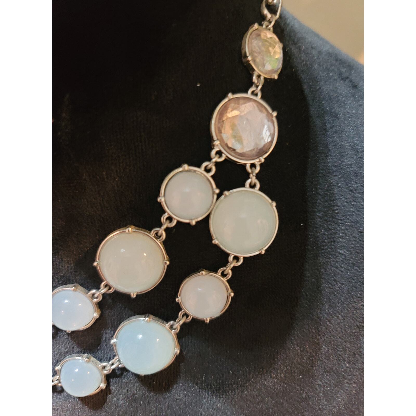 Women's Silver Faux Opalite And Gemstone Necklace With Lobster Claw Lock