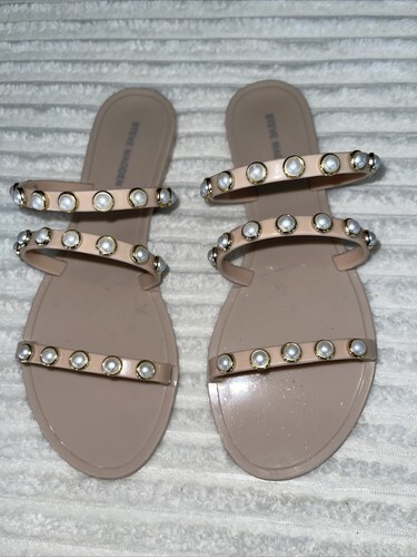 Steve Madden Yalsa Nude Plastic Pearl Sandals sz 9 new