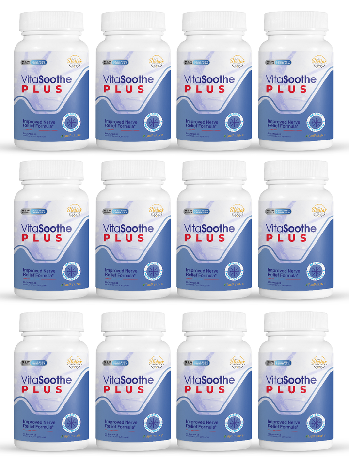 12 Pack Vita Soothe Plus, improves nerve relief-60 Capsules x12