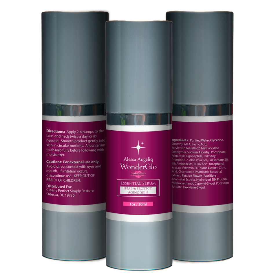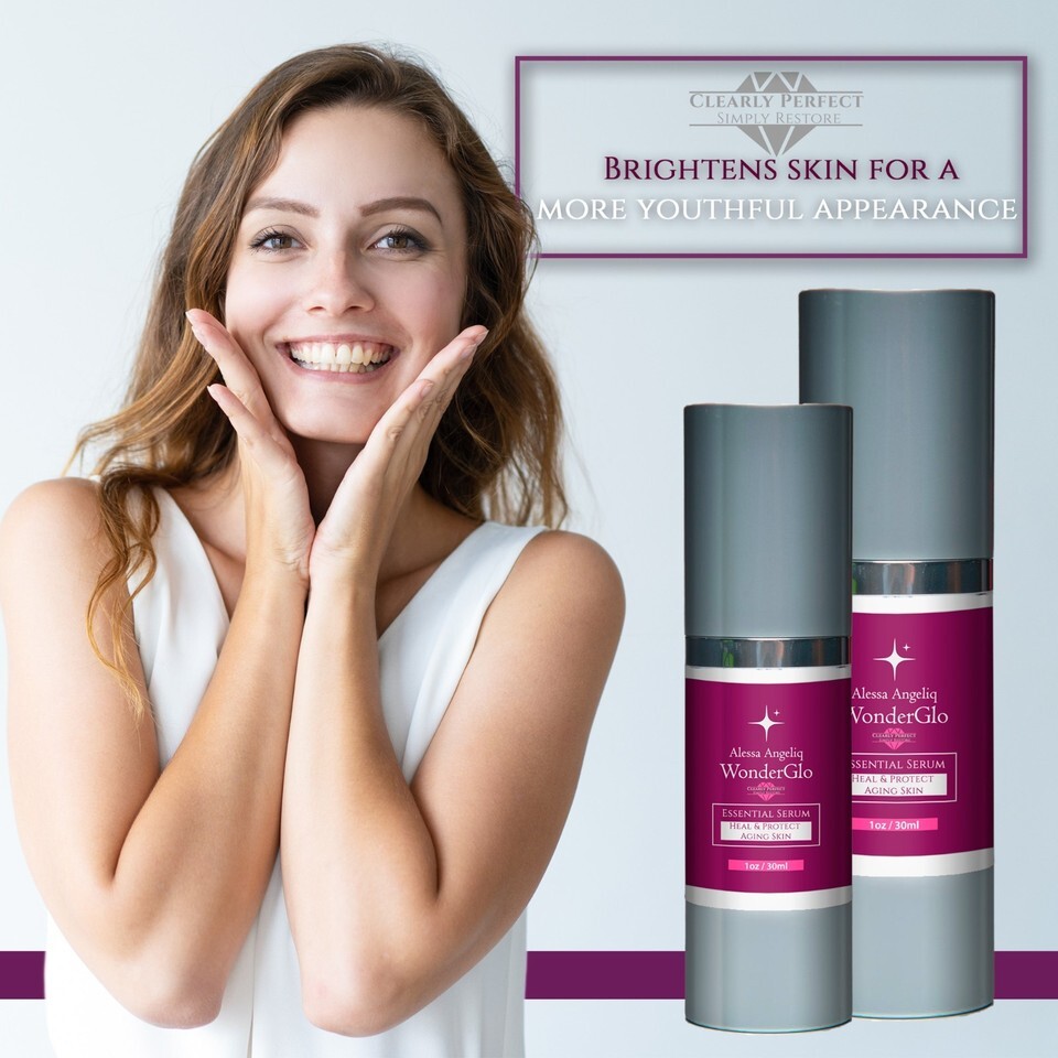 Wonder Glow Alessa Angeliq Serum - Essential Serum to Heal Protect Aging Skin - Clearly Perfect Simply Restore Cream - Anti Aging Wonder Glow Serum to Reverse and Prevent the Appearance of Aging