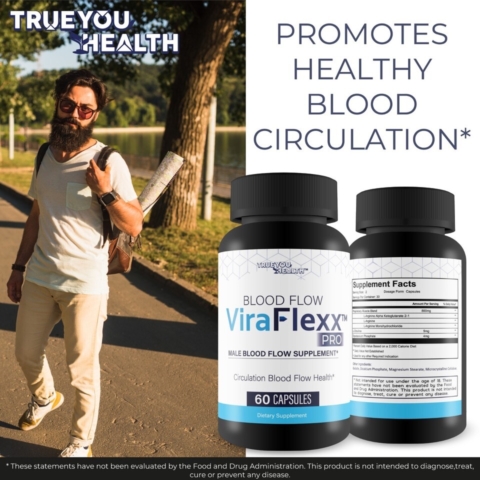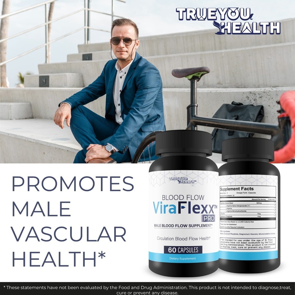 Blood Flow Vira Flexx Pro is a powerful men's supplement crafted to support overall circulatory health and promote healthy blood flow naturally. This viraflexx supplement contains an advanced blood flow pro formula featuring L-Arginine, a key amino acid that aids the body's natural nitric oxide production. Nitric Oxide promotes the relaxation and widening of blood vessels, helping increase blood flow. If you're focused on maintaining overall health, optimizing circulation, or enhancing vitality, this men blood flow supplement provides a natural way to help blood flow throughout the body.