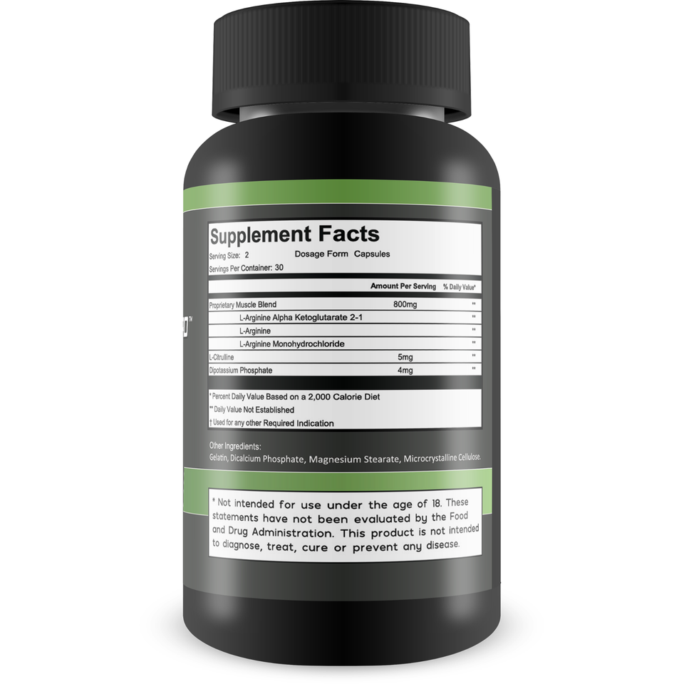 Surge Max Pro is a male muscle building supplement formulated to support increased muscle growth. The maximum strength formula helps to improve the vasodilation process of blood vessels, which causes blood circulation to increase and muscles to gain access to more blood, nutrients and oxygen. In turn you will feel explosive muscle pump to help you lift heavy and build muscle mass. This product contains a high dose of L-Arginine and L-Citrulline. For best results take Surge Max Pro 30 minutes pre-workout to feel an improvement to your strength, energy, endurance, stamina, and pack on that lean muscle mass.