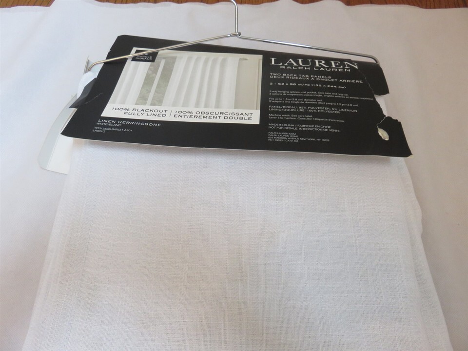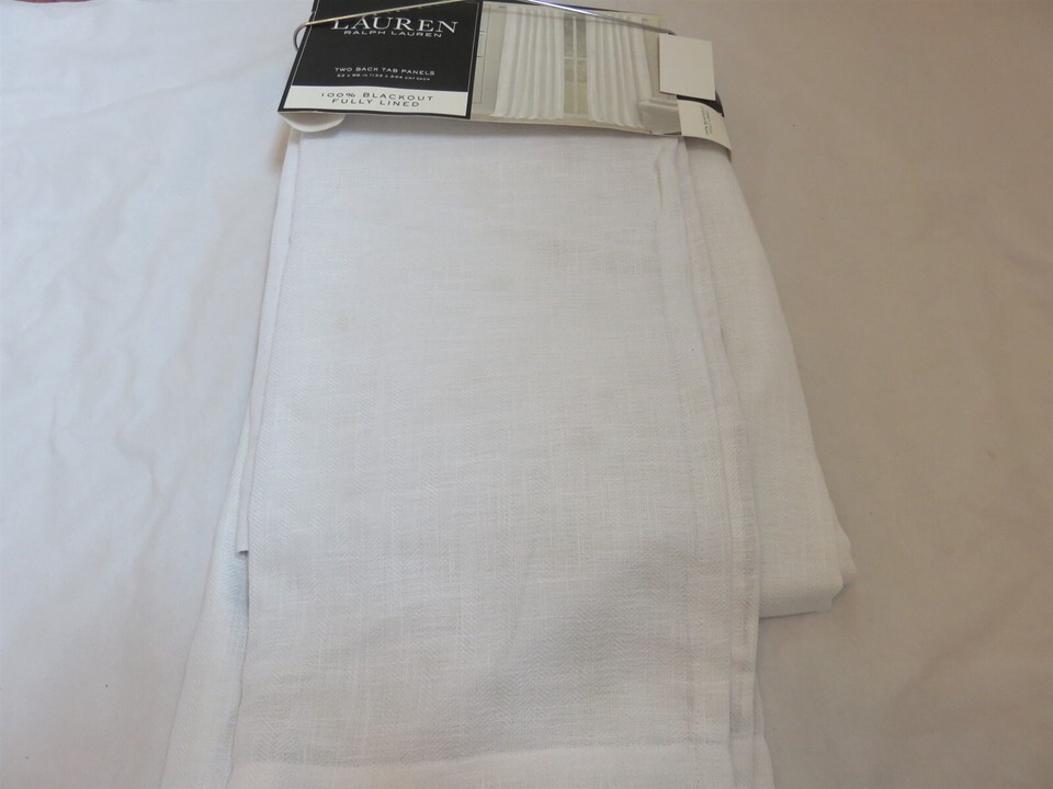 2 Ralph Lauren Linen Herringbone Blackout Panels Window Curtains 52x 96 White