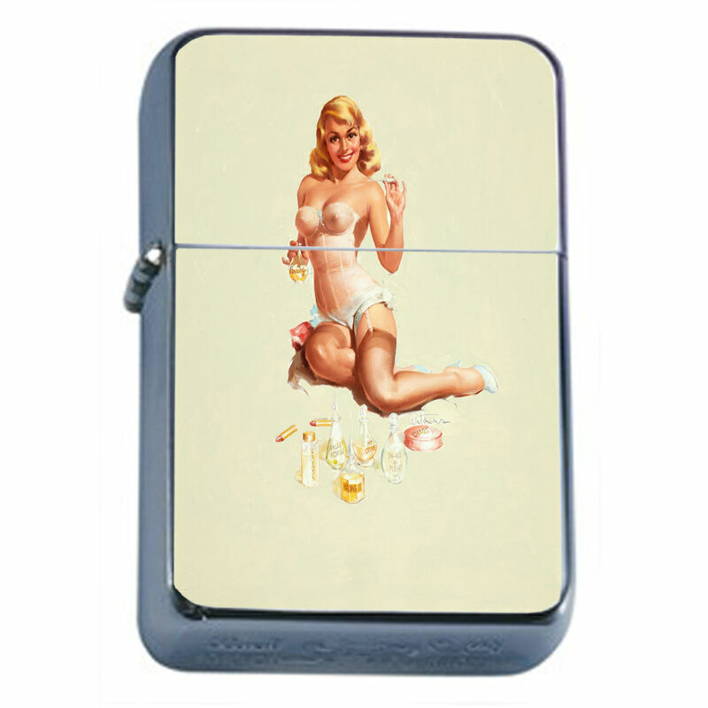 Windproof Refillable Fliptop Oil Lighter Classic Vintage Model Pin Up Girl D-056