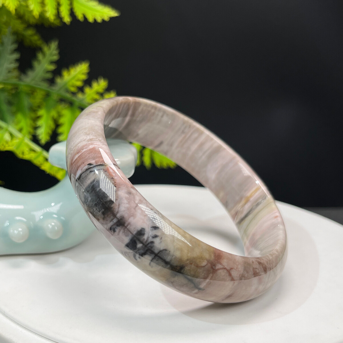 Silicified Jade Bangle 61MM Porcelain Luster Jadeification Celestial Eyes
