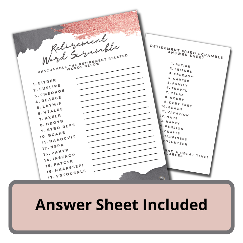 50 Rose Gold Retirement Party Games for Women Word Scramble Would They Prefer