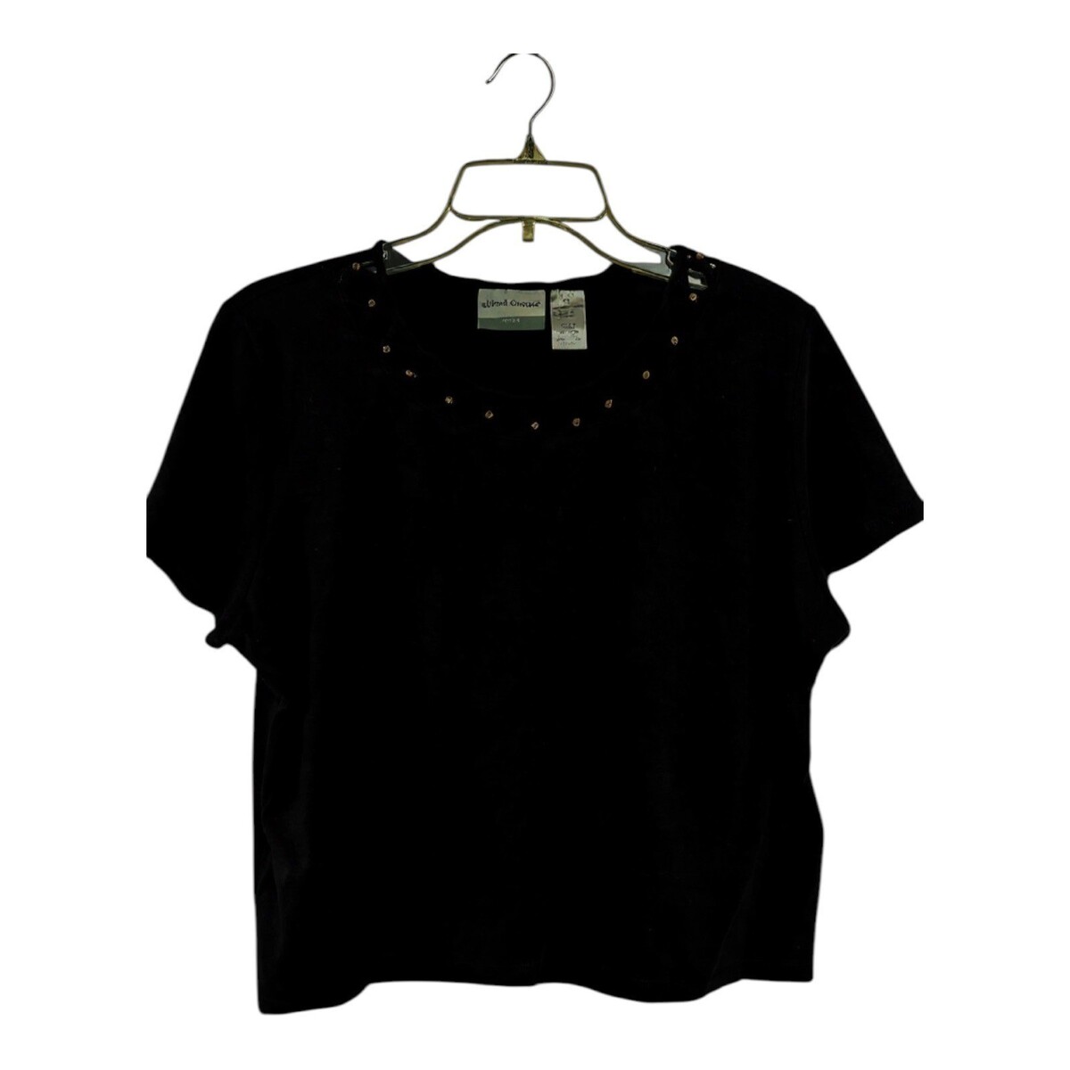 Alfred Dunner Petite XL Women’s Black Short Sleeve Top – Lattice Collar with Woo