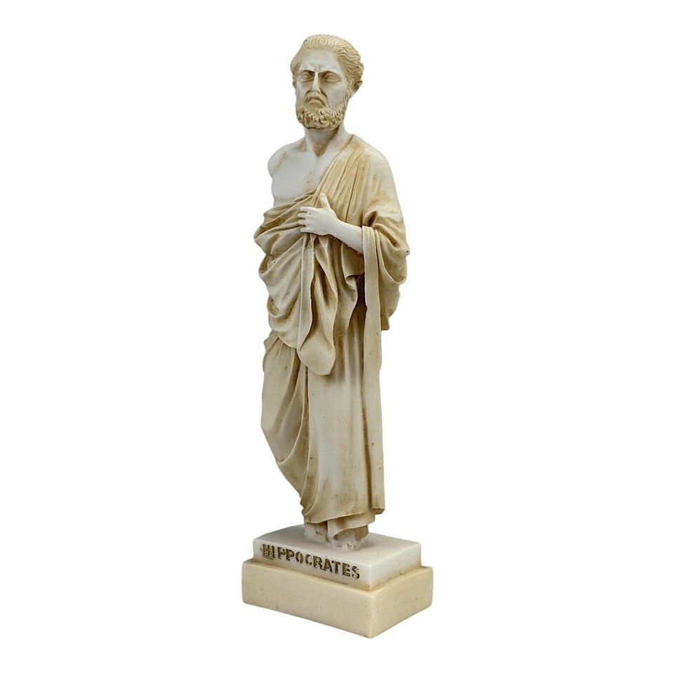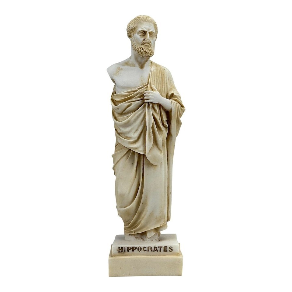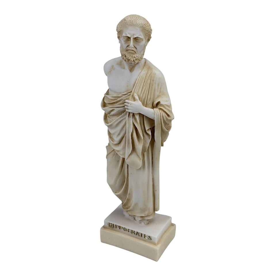 Hippokrates Vater der modernen Medizin Arzt Marmorguss Statue Skulptur Patina Farbe mit Goldakzenten