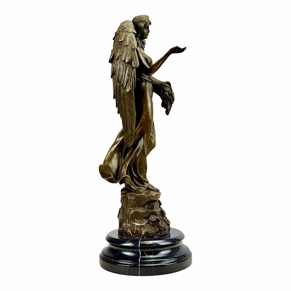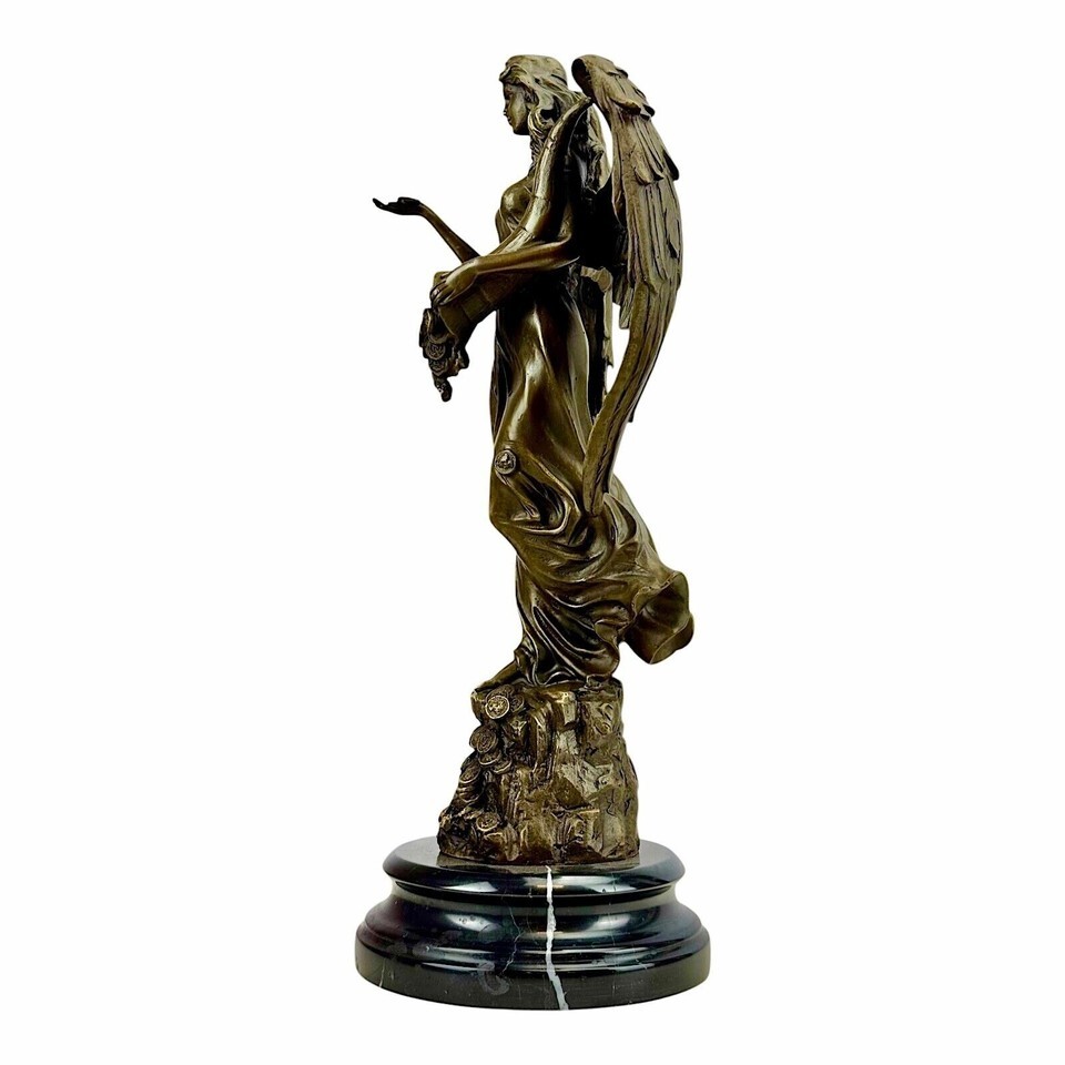 Gottin Fortuna Tyche Reichtum Viel Glück Statue Skulptur Figur Echt Bronze Natur Marmorsockel