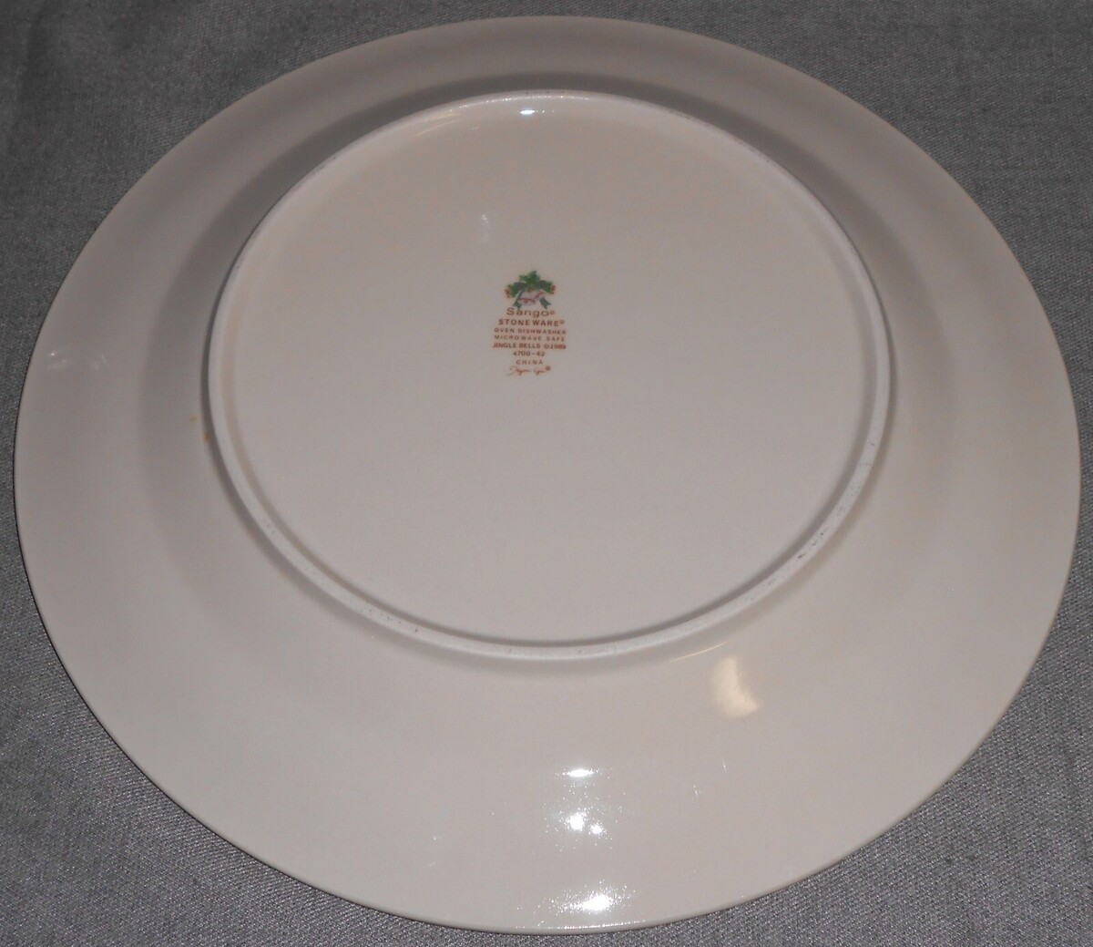 This is a Set of (2) 10 1/2" Stoneware Dinner Plates dated 1989 from Sango in the Jingle Bells Pattern. They are both in good pre-owned condition with no chips or cracks.