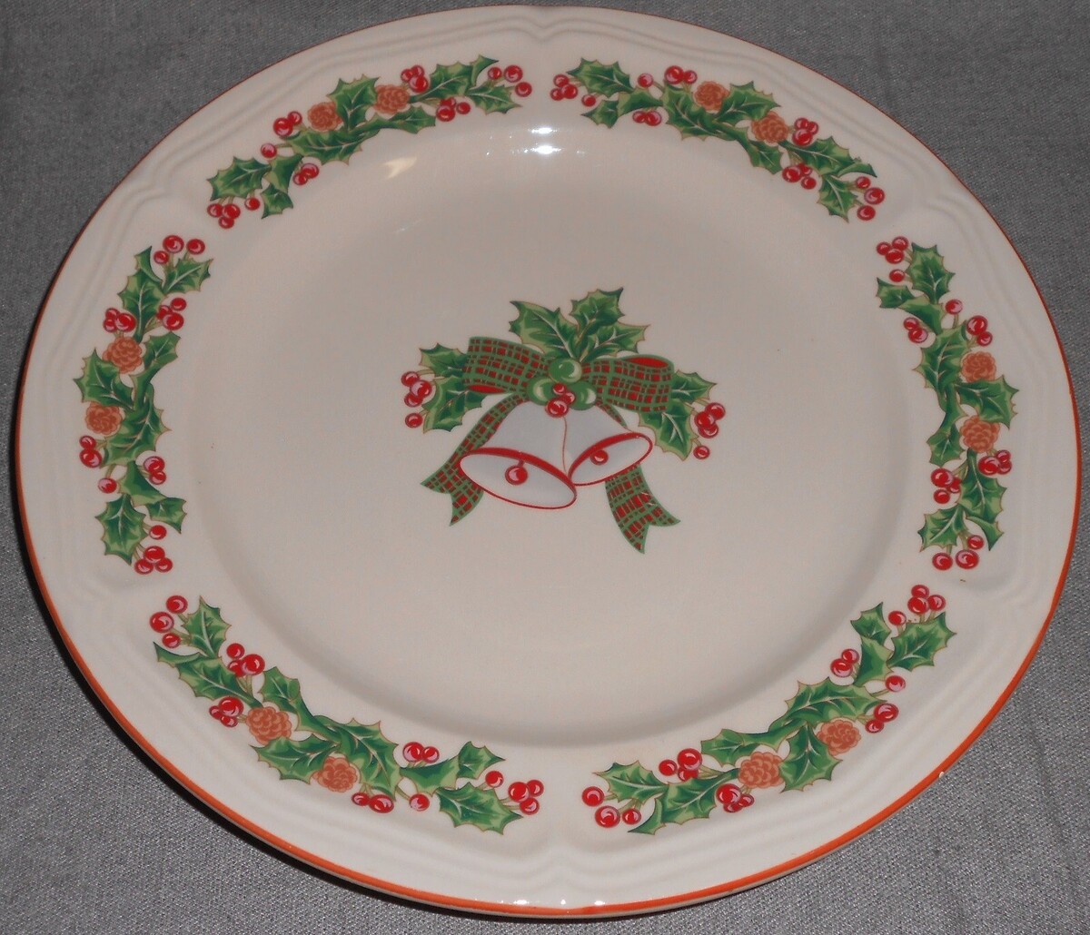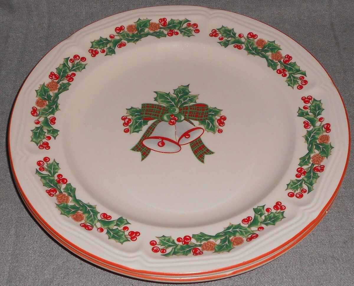 Set (2) Sango JINGLE BELLS PATTERN Stoneware DINNER PLATES
