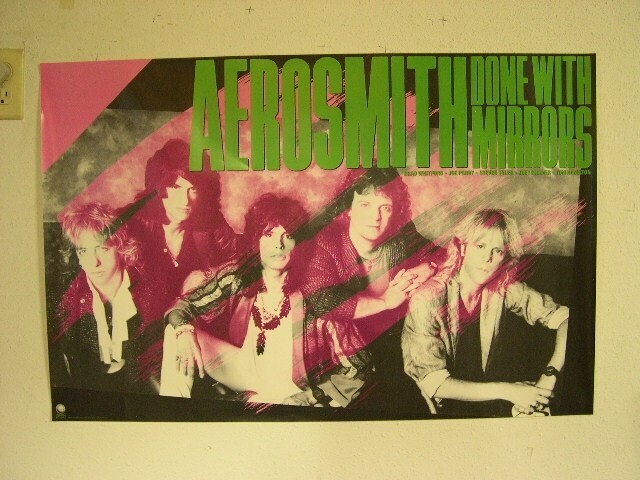 Disparo de la banda de carteles de aerosmith hecho con espejos viejos