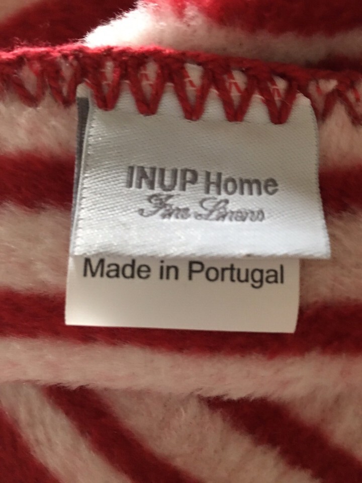INUP STRIPES RED/OFF WHITE FLEECE THROW BLANKET MADE IN PORTUGAL 50"x 67" NWT