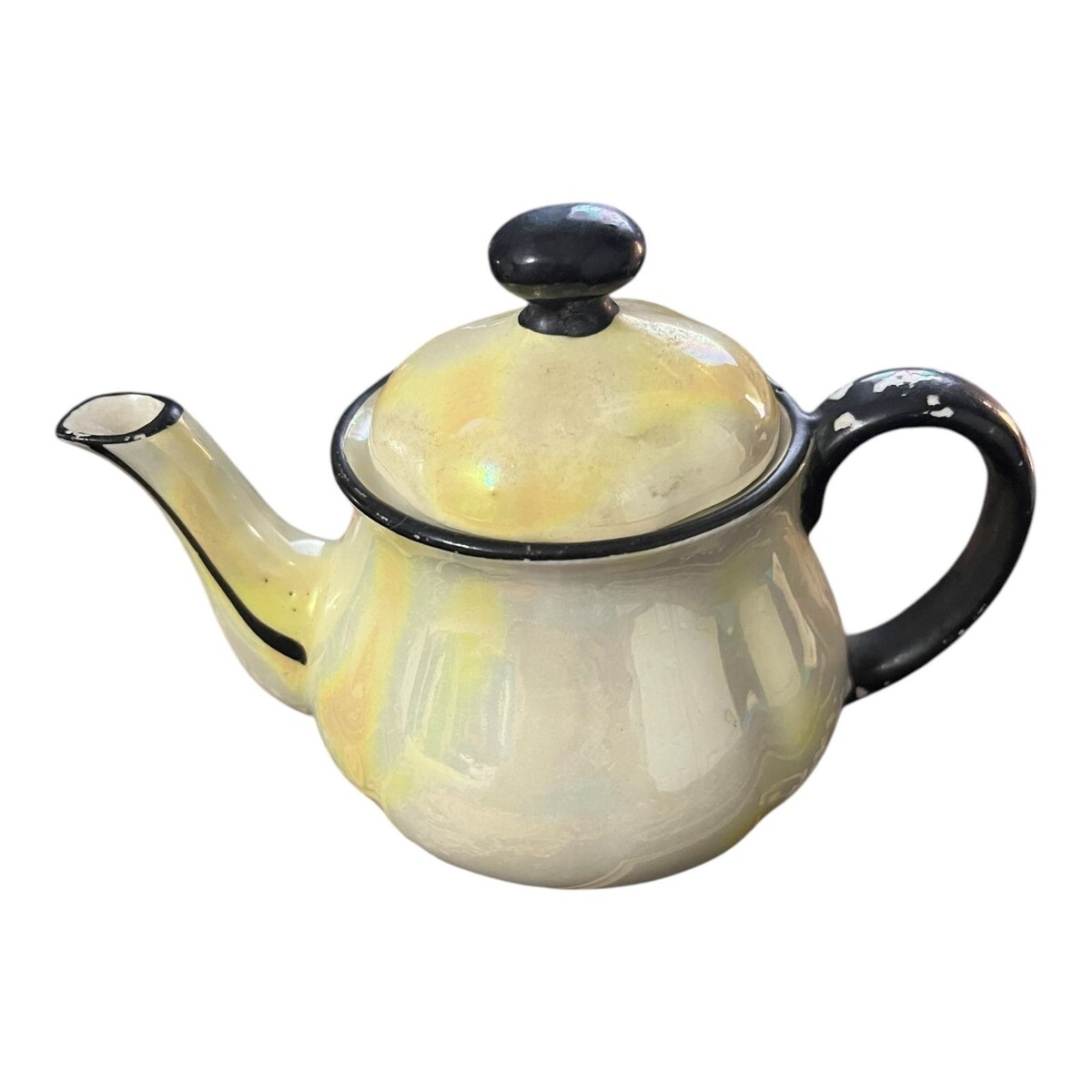 Vintage Czechoslovakia Lusterware Teapot ? Cream Yellow Iridescent Finish ? Black Trim ? 4.5x6