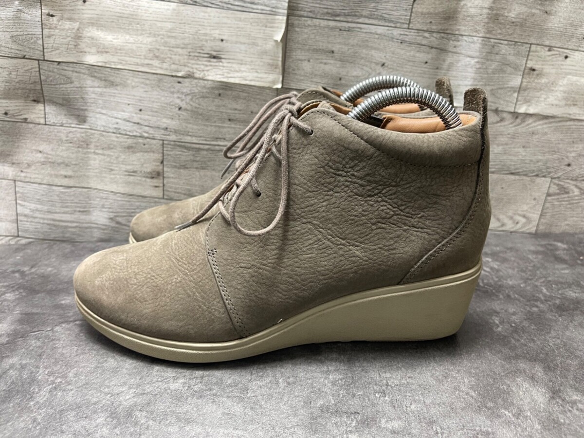 Clarks Boots Women 8M Un Tallara Eva Shoes Brown Gray Suede Wedge Heel Ankle