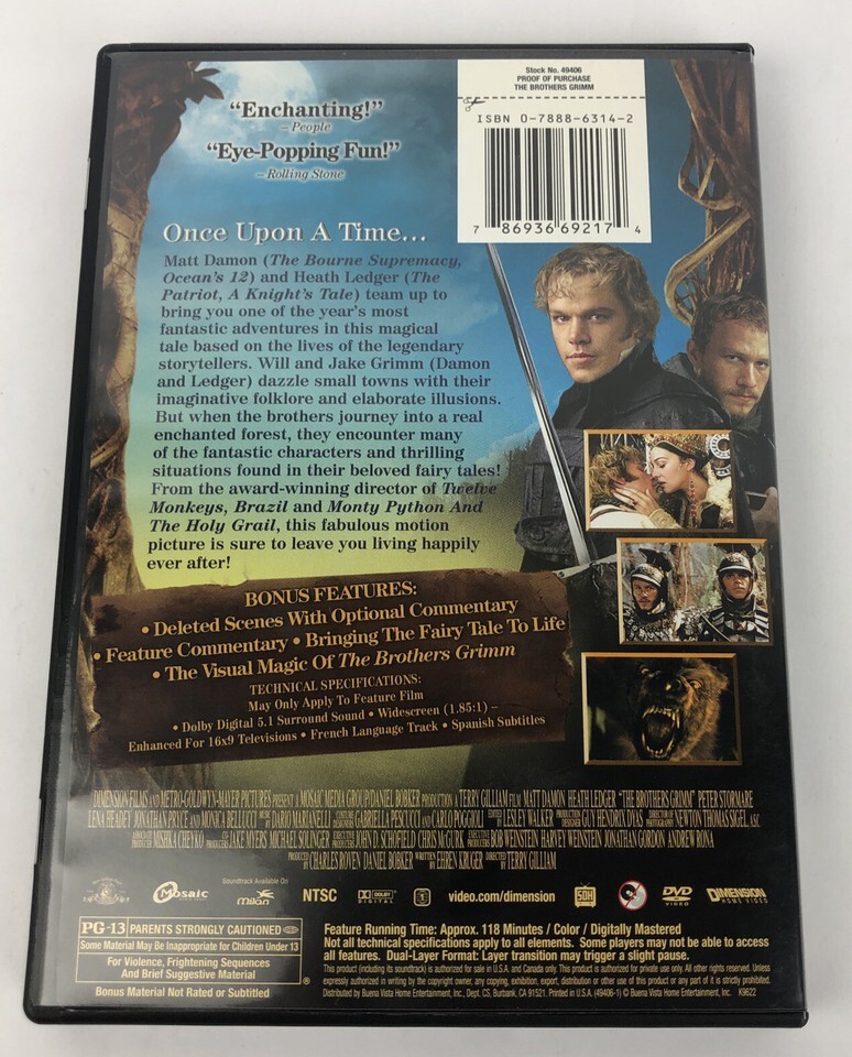 The Brothers Grimm (DVD, 2005) Heath Ledger and 11 similar items
