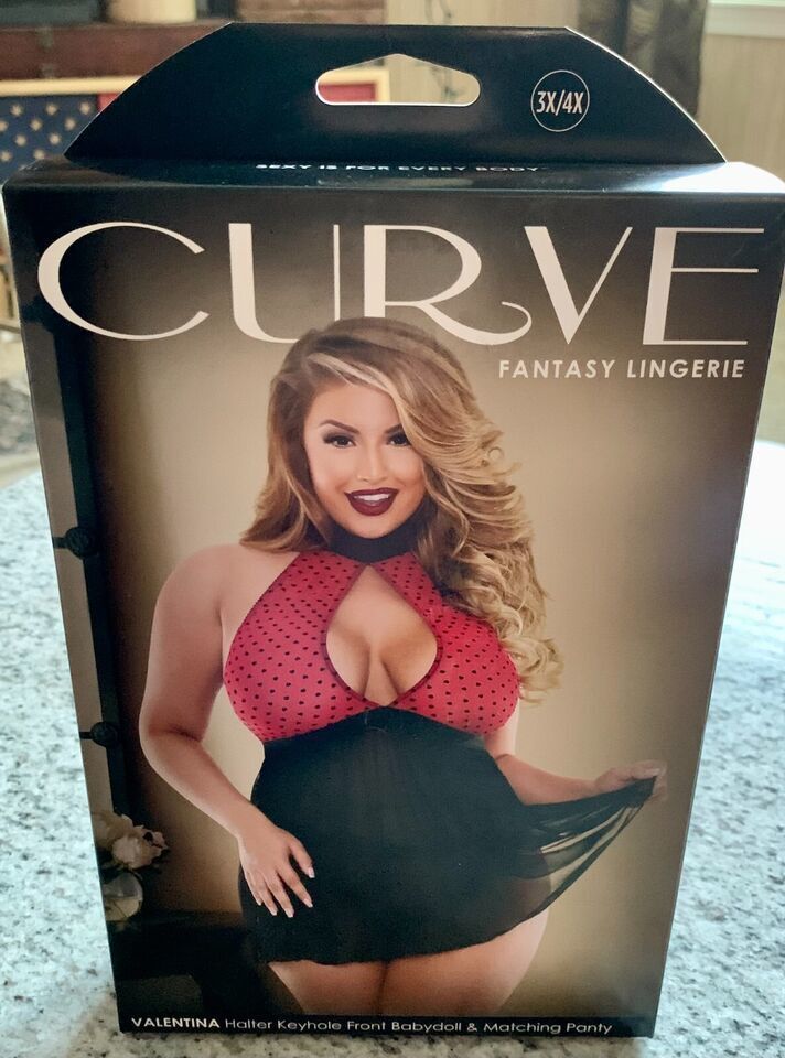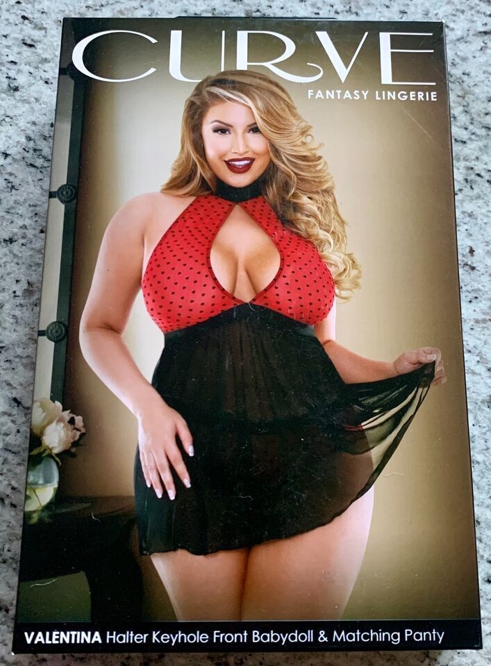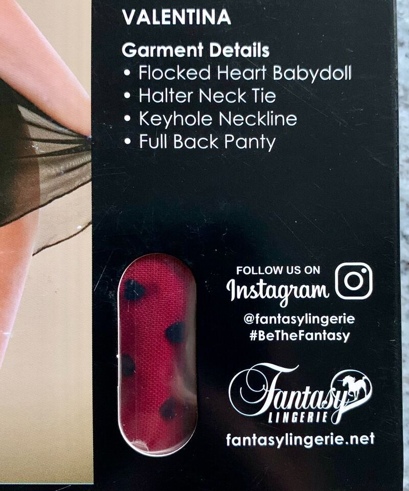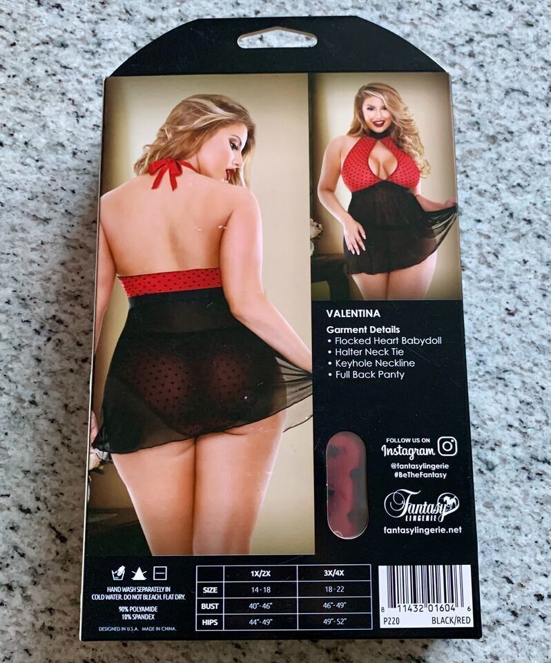 Fantasy Lingerie Curve-Valentina-Flocked Heart Babydoll Halter Neck Tie One Size Fits most size 3X/4X