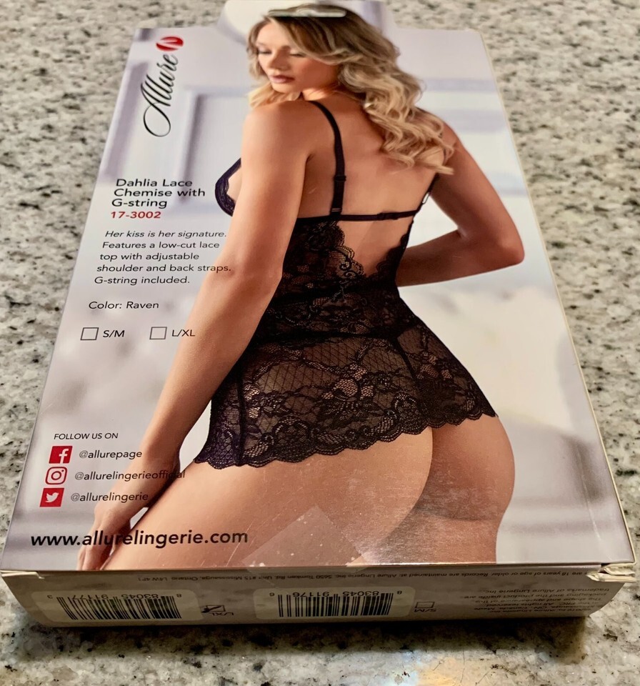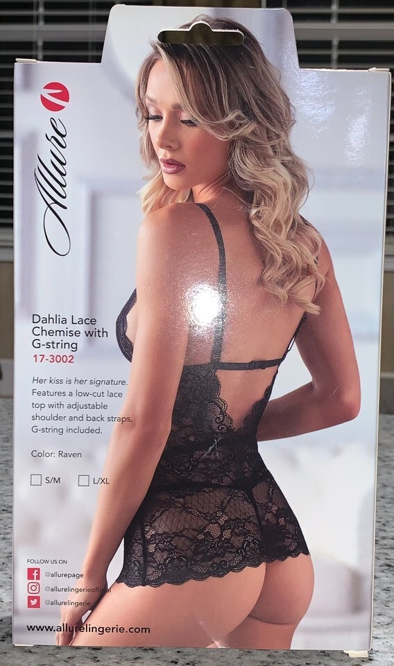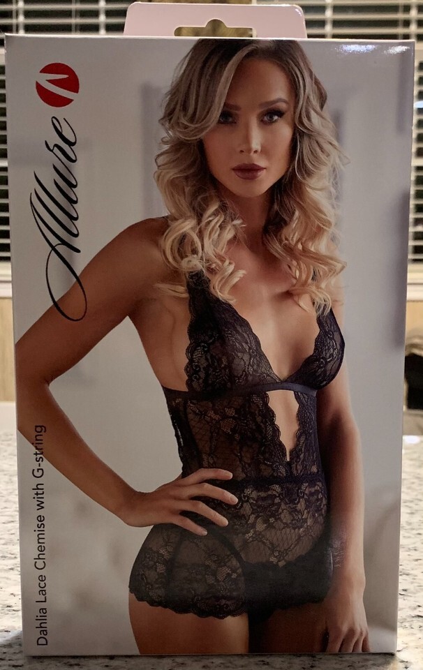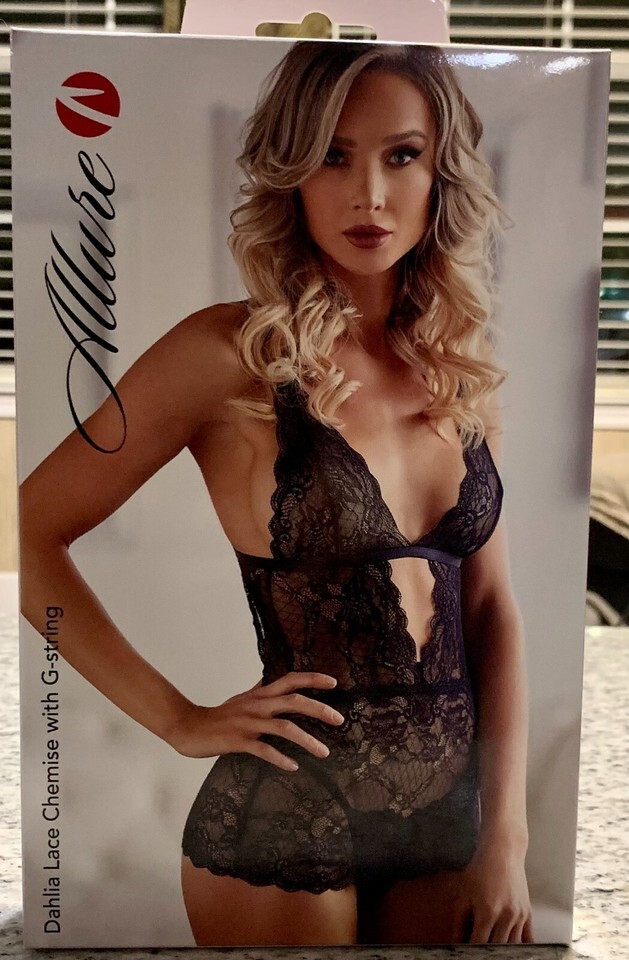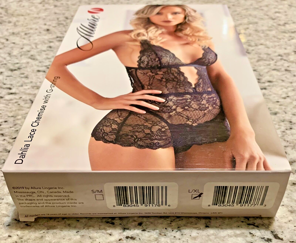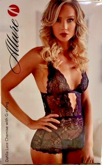 Allure Dahlia Chemise with G String -Black L/XL -Boxed MPN 17-3002