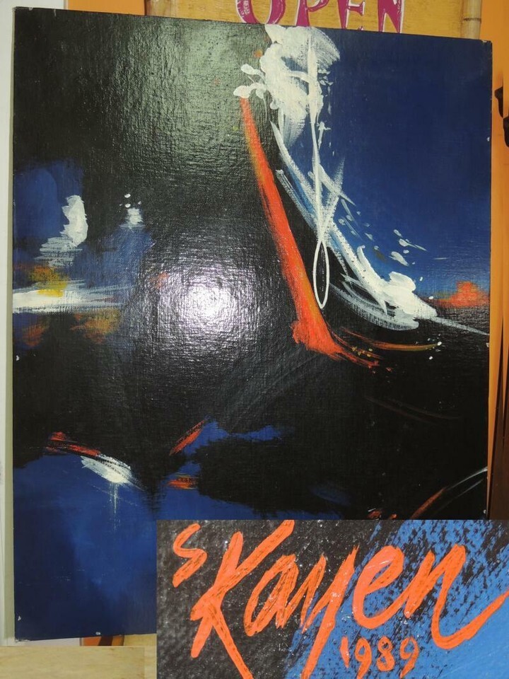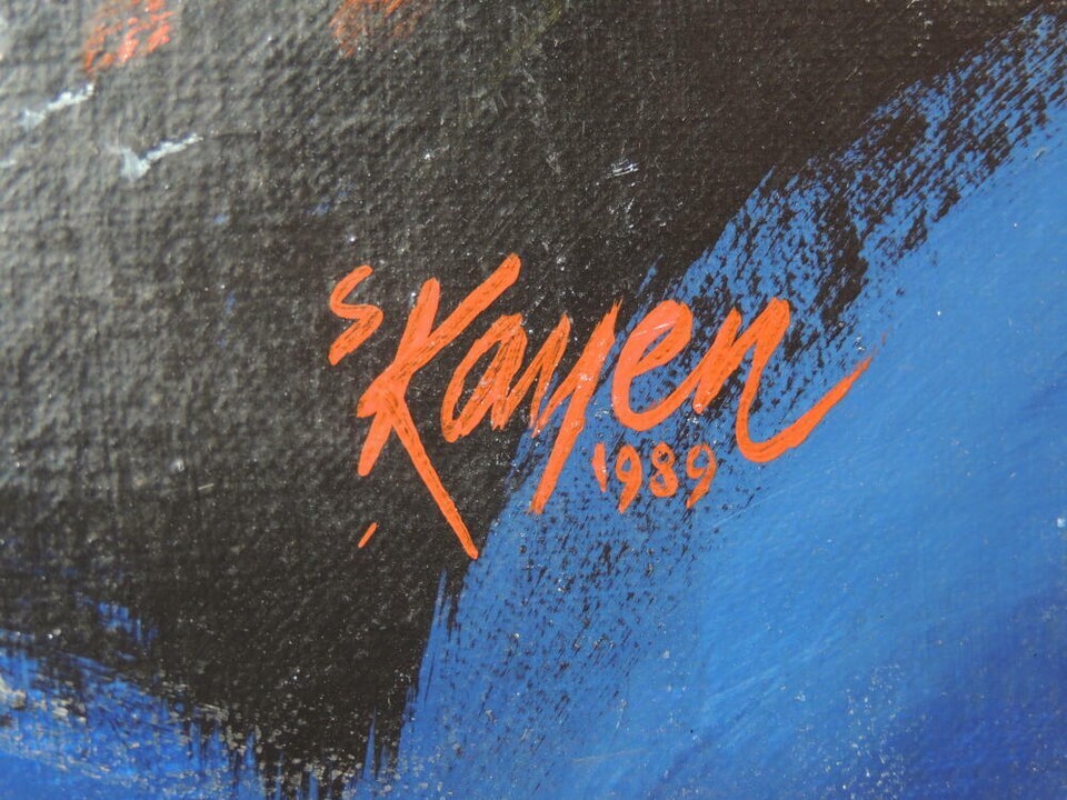 Painting signed 20x16 S Kamen Canvas expressionist Samuel Sam Broken Dreams 1989