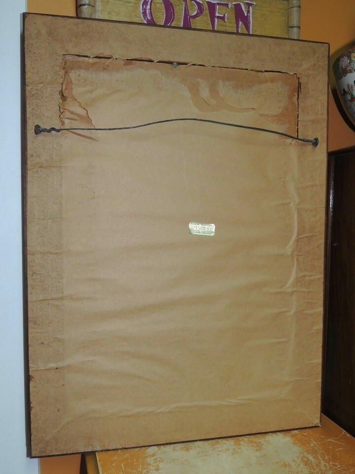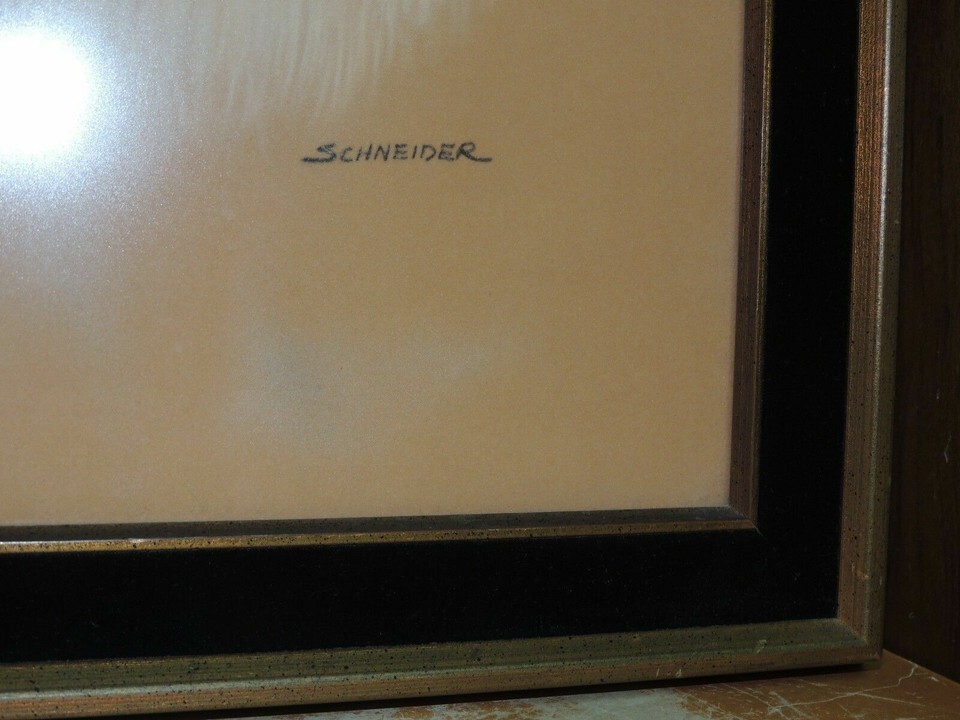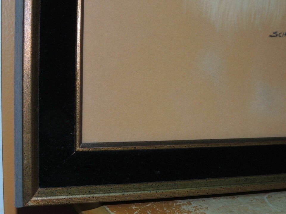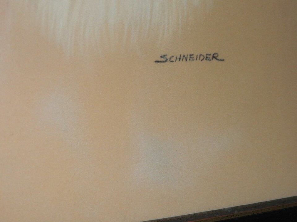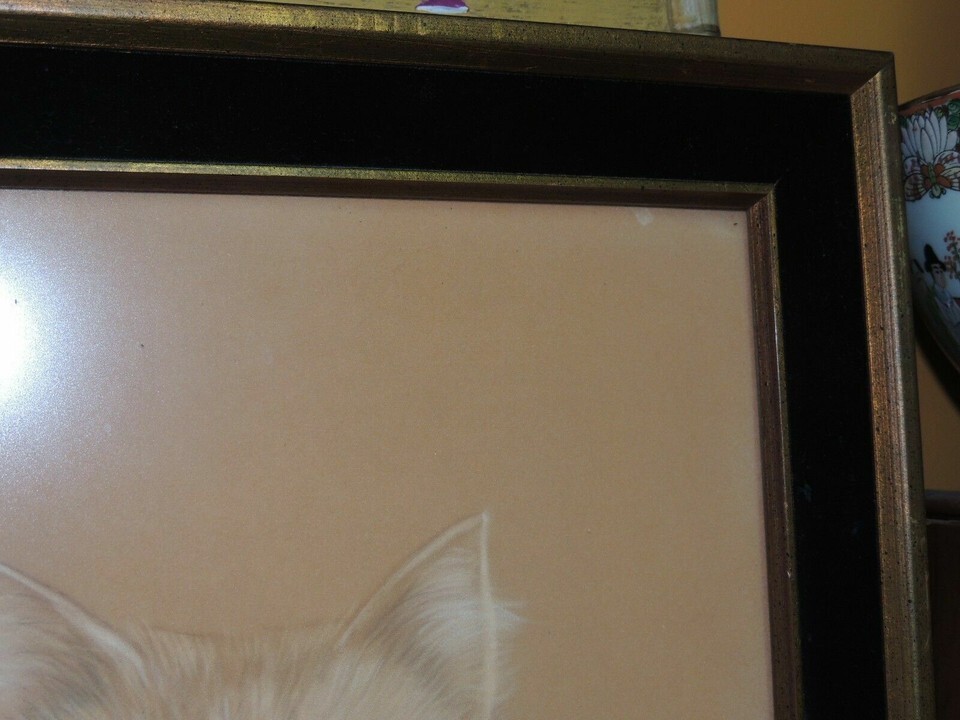 Schneider Painting on felt Cat Portrait 14"x19" Black Velvet Frame Mid Century