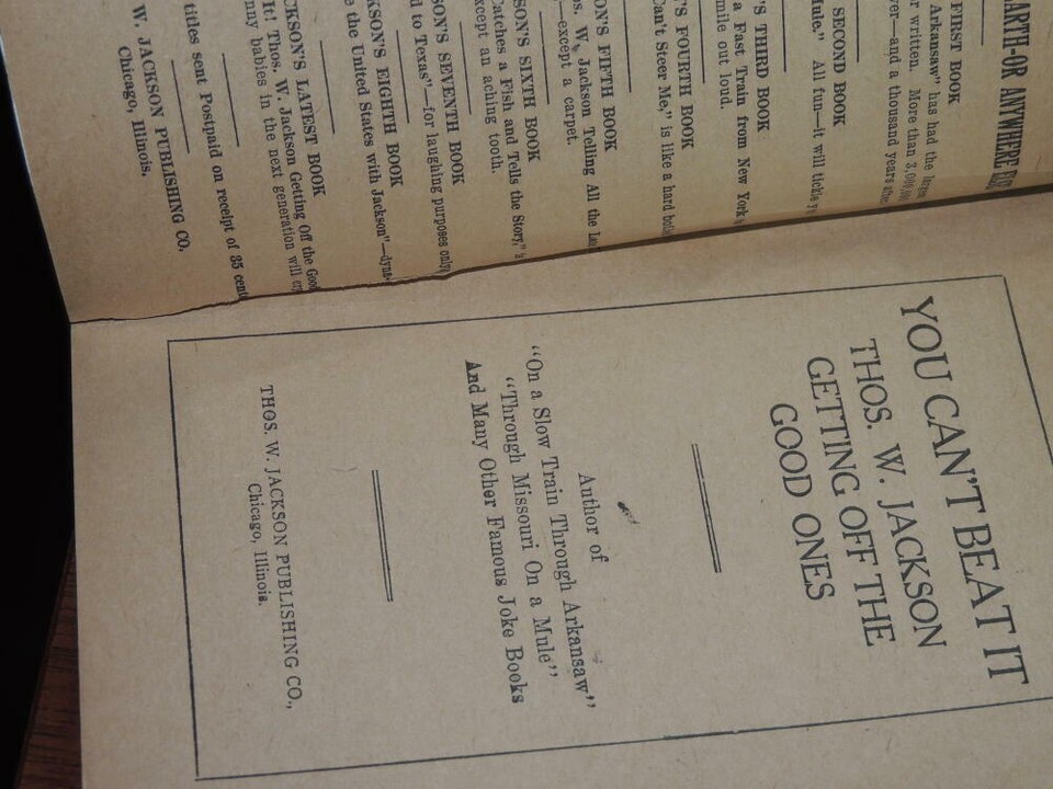 1918 You Can't Beat It Getting Off the Good Ones Thomas W Jackson Joke Book