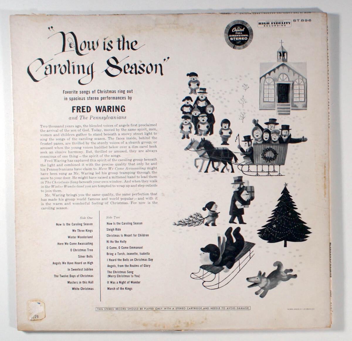 Now is the Caroling Season, by Fred Waring, released in 1957, is a beloved holiday album featuring the renowned Pennsylvanians choir performing a festive collection of Christmas carols. The album showcases Waring's signature choral arrangements, blending traditional carols like O Come, O Come, Emmanuel and White Christmas with a warm, polished sound that captures the spirit of the season. Historically significant for its role in popularizing choral Christmas music during the mid-20th century, it reflects Waring's influence as a pioneer in choral direction and radio broadcasting. The album, while not known for producing chart-topping singles, includes standout tracks like Carol of the Bells and Winter Wonderland, which have remained enduring holiday favorites. Its release on Decca Records solidified Waring's reputation for delivering high-quality, accessible holiday music that resonated with a wide audience.