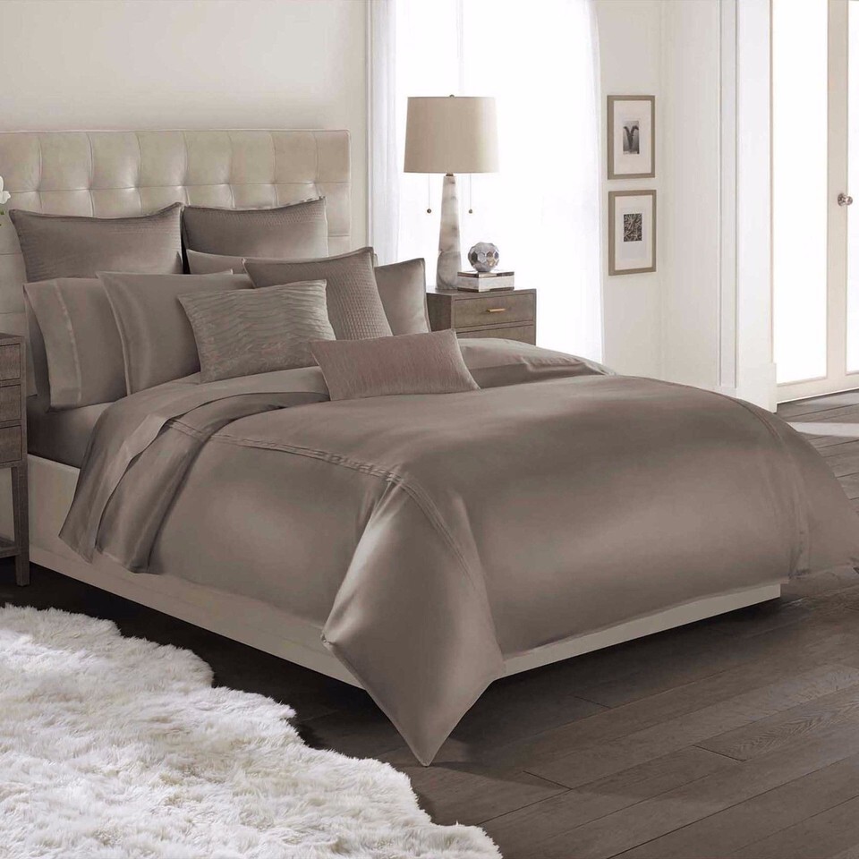 Reversible Duvet Cover features luxurious silk with delicate pin tucks running vertically on 2 sides