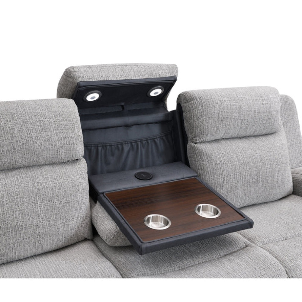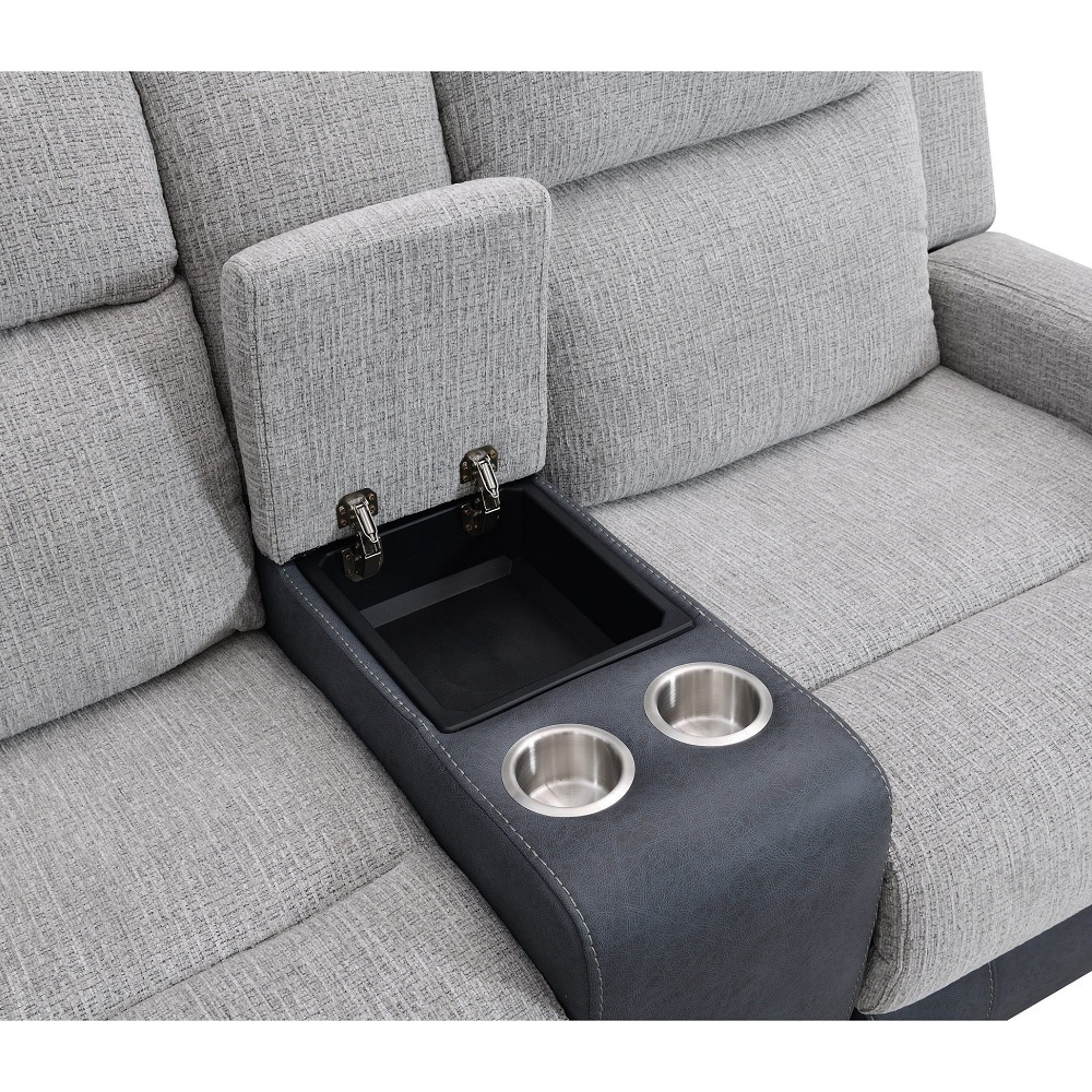 Loveseat includes a center console with built-in cup holders and hidden storage