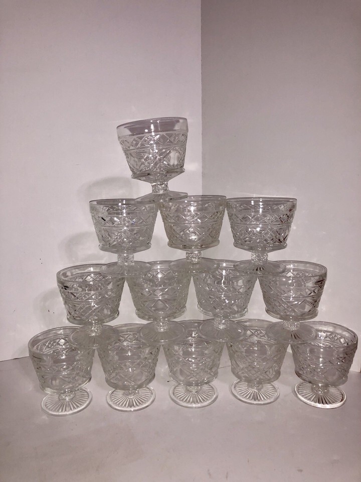 Set Of 13 Vintage Hazel Atlas Big Top Peanut Butter Dessert Sherbet Glasses Bowl