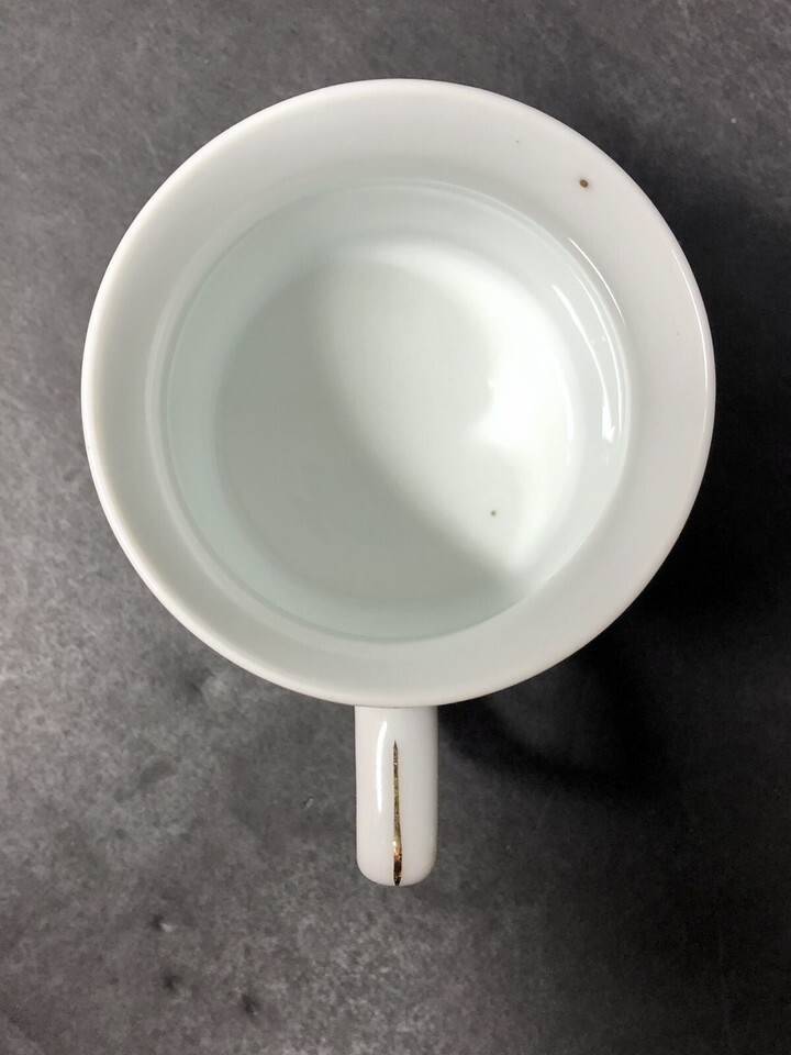 Vintage Chinese Mountain Scene Coffee Mug Cup Gold Rim 3 3/4” Tall Trees Handle