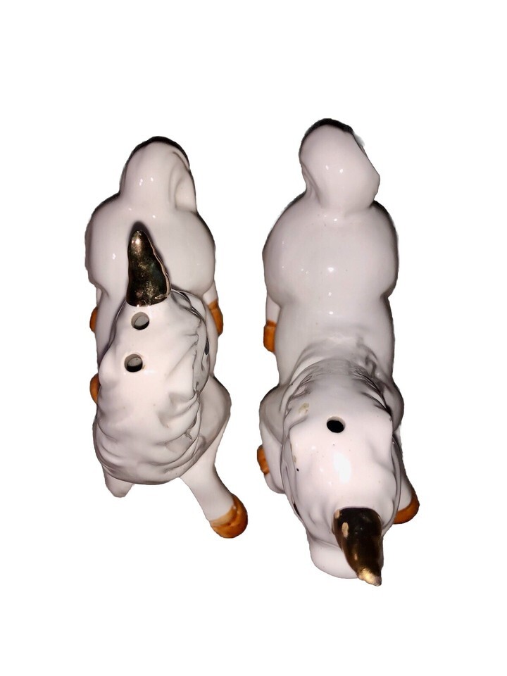 Vintage Laying Down Unicorns White Gold Salt Pepper Shakers Ceramic W/ Stoppers