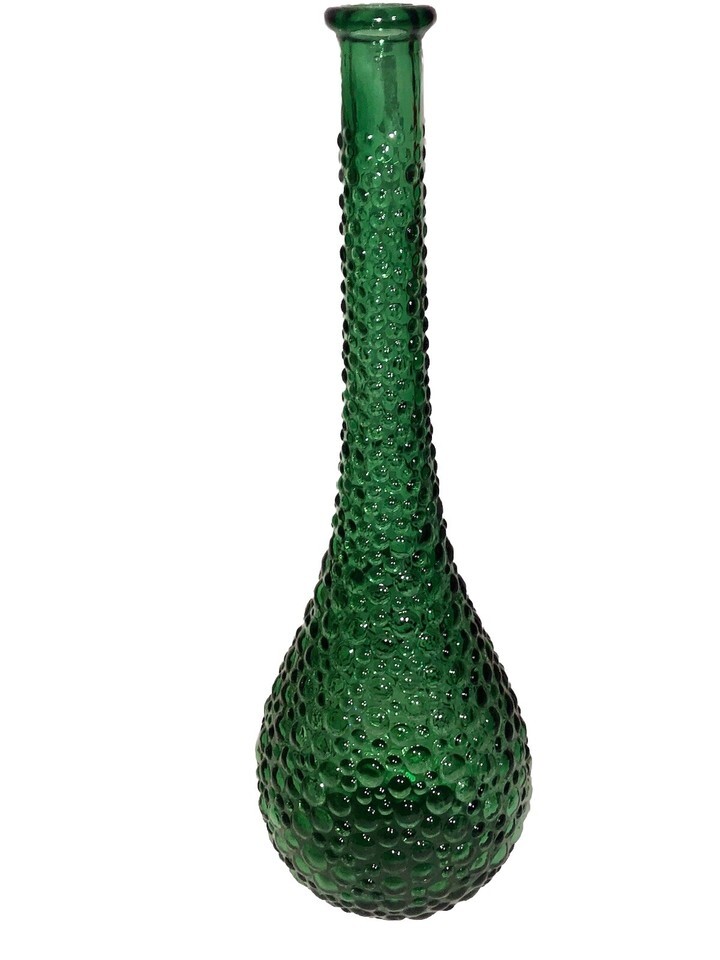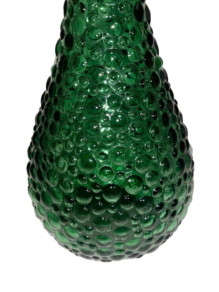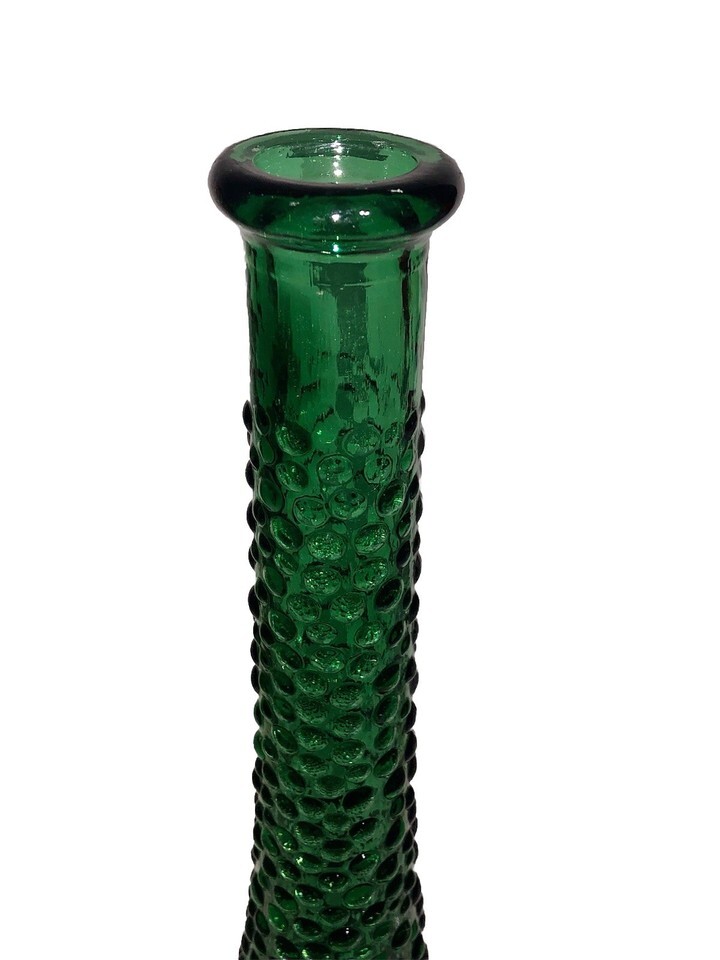 Vintage Emerald Green Empoli Bubble Hobnail Glass Genie Bottle Decanter Vase 15โ