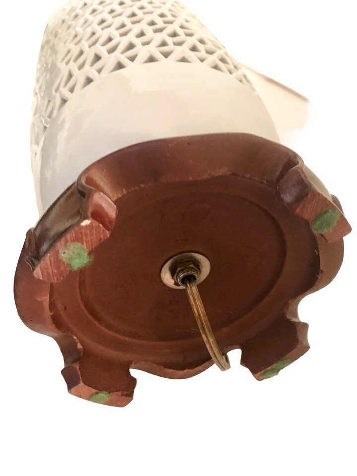 Vtg Vintage Blanc De Chine Japanese Reticulated Cut Out Porcelain Table Lamp Asian Cherry Blossom pattern